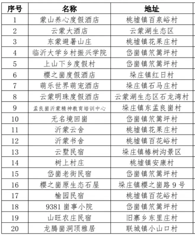沂蒙山云蒙景区(5A)、孟良崮景区(4A)、岱崮地貌景区(4A)、萌乐世界景区(3A)、云蒙明珠景区(3A)共 5 家 A 级景区
