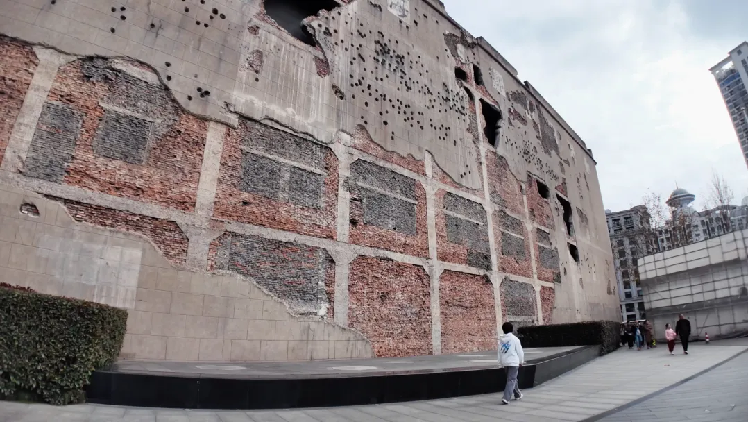 最让人动容的是四行仓库的弹孔墙。余晖洒在斑驳的墙面上,密密麻麻的弹痕像一个个沉默的惊叹号,诉说着 “八百壮士” 死守孤城的壮烈。贴着墙面缓缓走过,指尖轻压过每一个凹陷的弹孔,触摸到的,是旧日的痕迹、是起伏的光影、是不息的坚守。