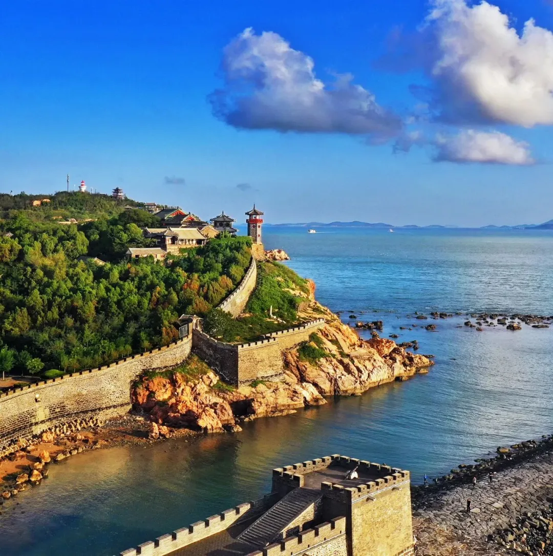 主阁高踞山巅,凭栏远眺,那种开阔感是无与伦比的,黄海和渤海在这里交汇,水面颜色深浅不一。