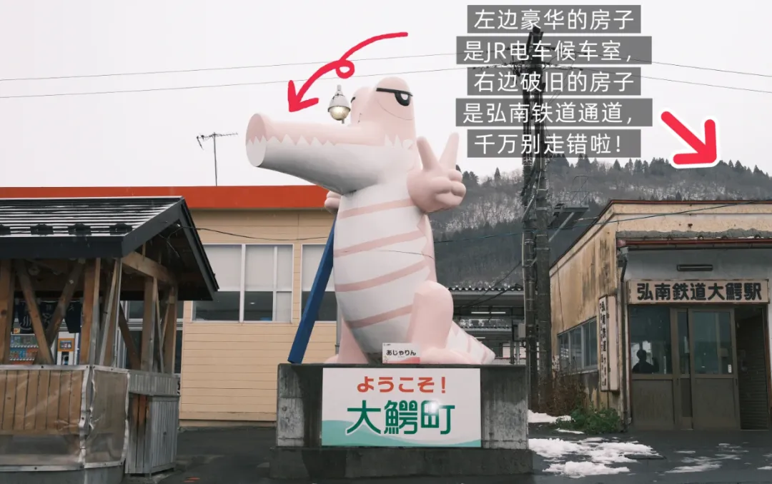 鳄come就位于温泉小镇大鳄町,车站旁那只粉色鳄鱼就是这里的地标,一下车就能看到,非常好找