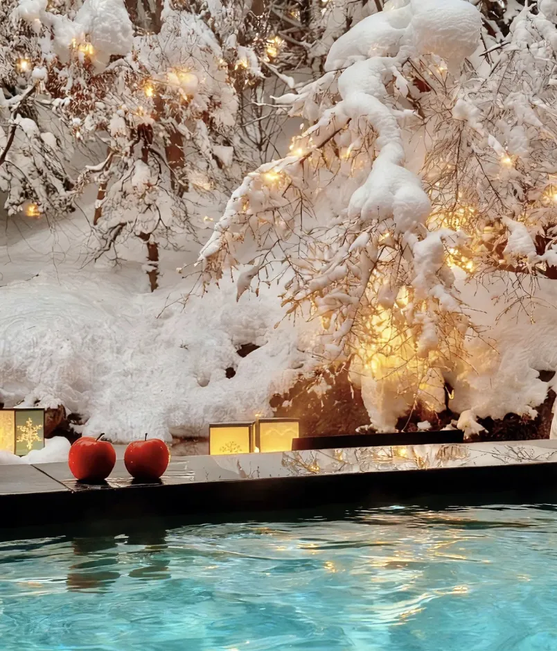 露天风吕必泡!雪夜抬头见星空,雪花落在肩头