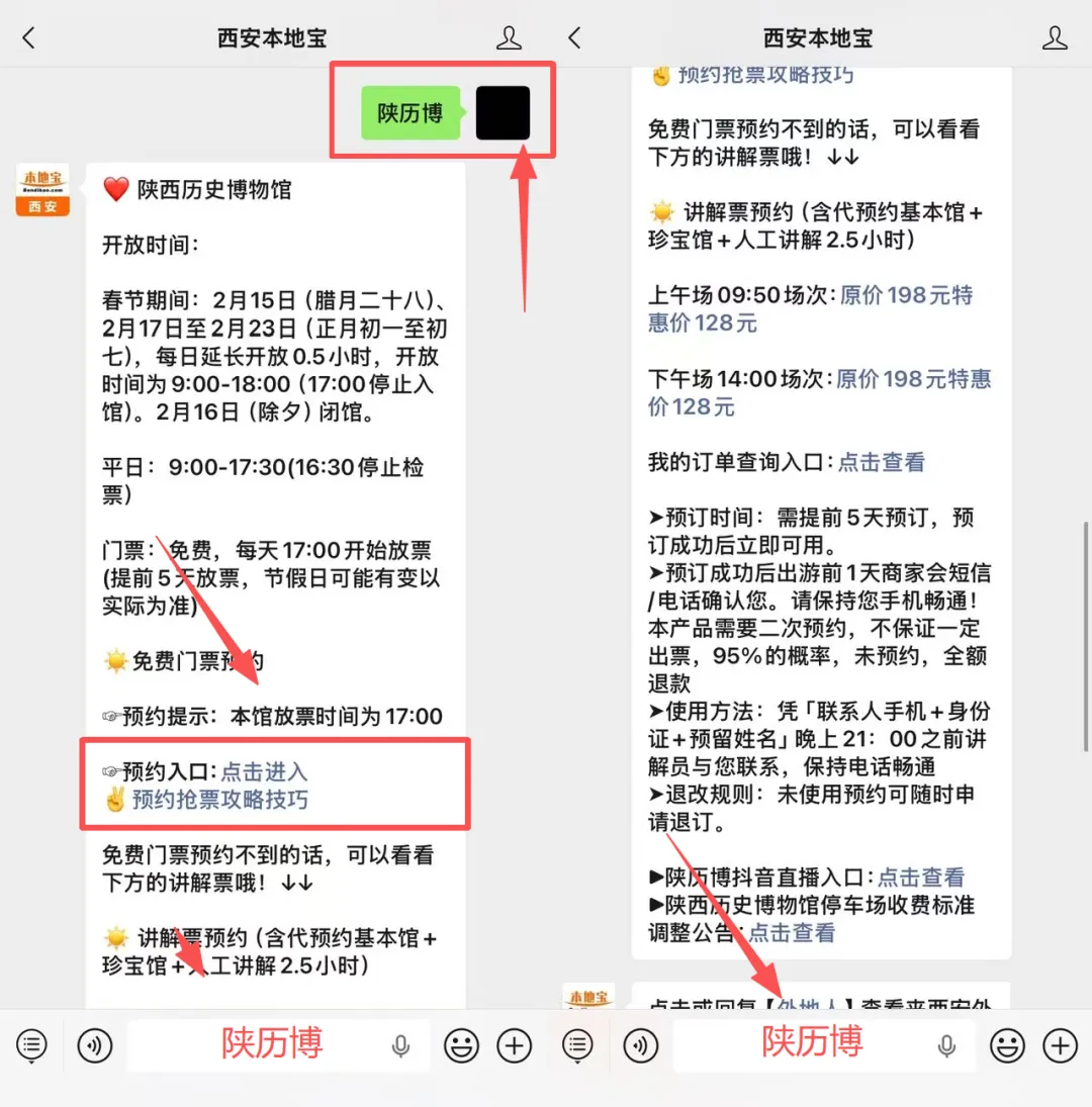 👉小提示:在【西安本地宝】微信后台对话框回复【博物院】快速进入景区预约门票入口。