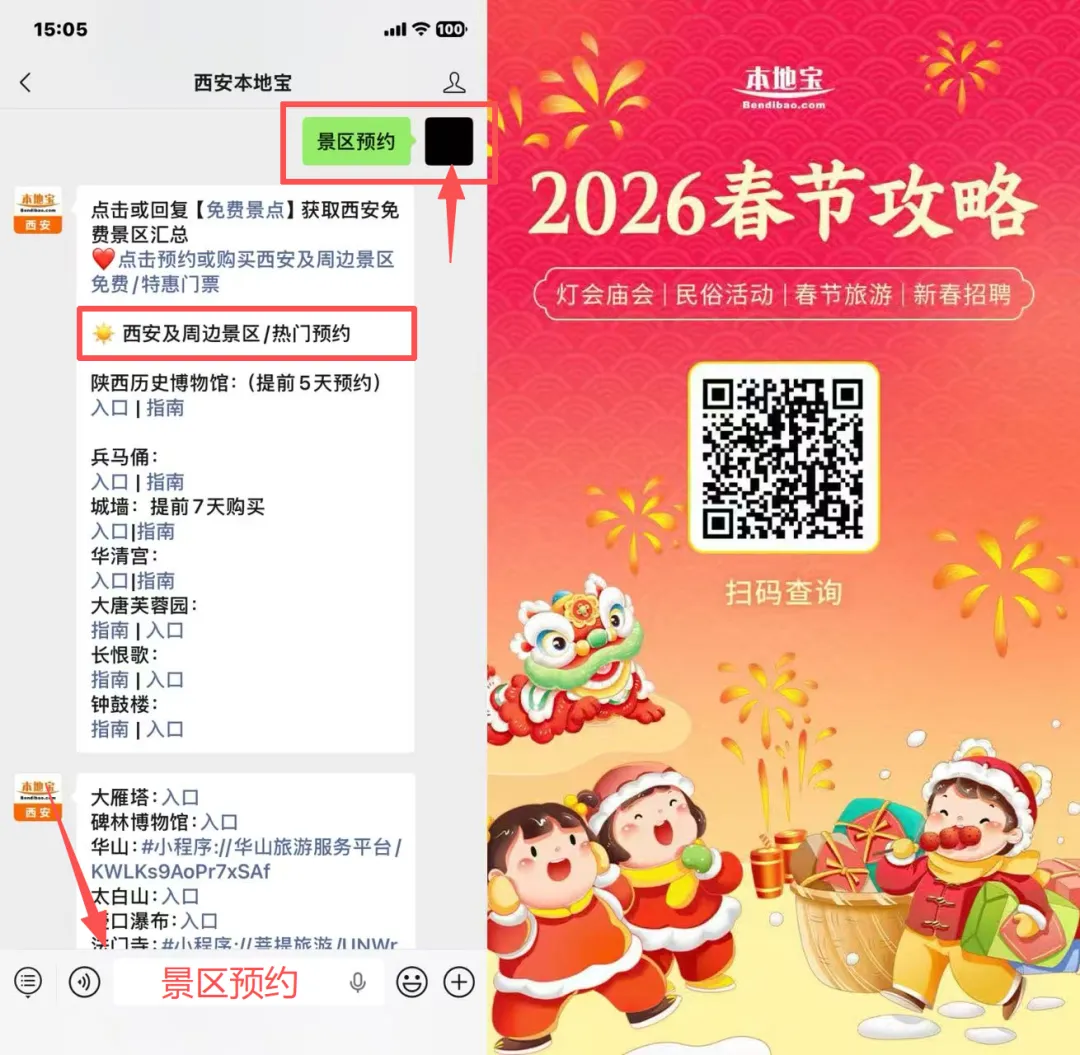 👉预约入口及方式:大家也可以在【西安本地宝】微信后台对话框回复【钟鼓楼】快速进入景区预约门票入口。