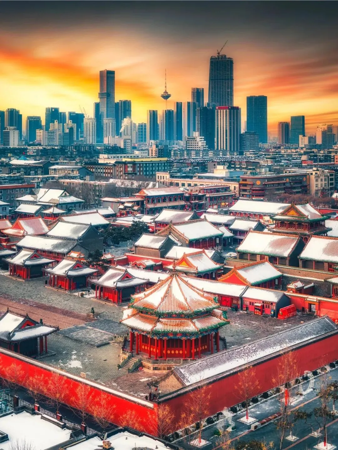 清早陪父亲逛逛小河沿早市,油炸糕的甜香飘过热气腾腾的摊铺,充盈你的整个鼻腔。故宫红墙下,听满语讲解员讲鹰架往事,母亲轻轻触摸琉璃影壁。傍晚一家人吃着酸菜铜锅,咕嘟声中父亲抿口老酒,说起他年轻时的冬天。这座城的豪爽里藏着暖意,连北风都为你们放缓了脚步。