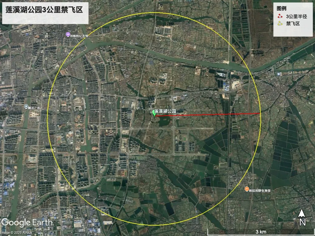 莲溪湖公园为原点,半径三公里范围内实行临时空中管制。