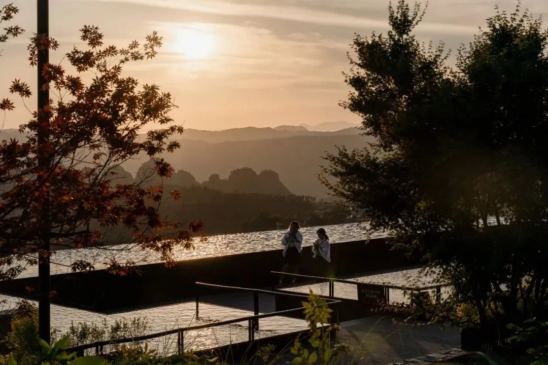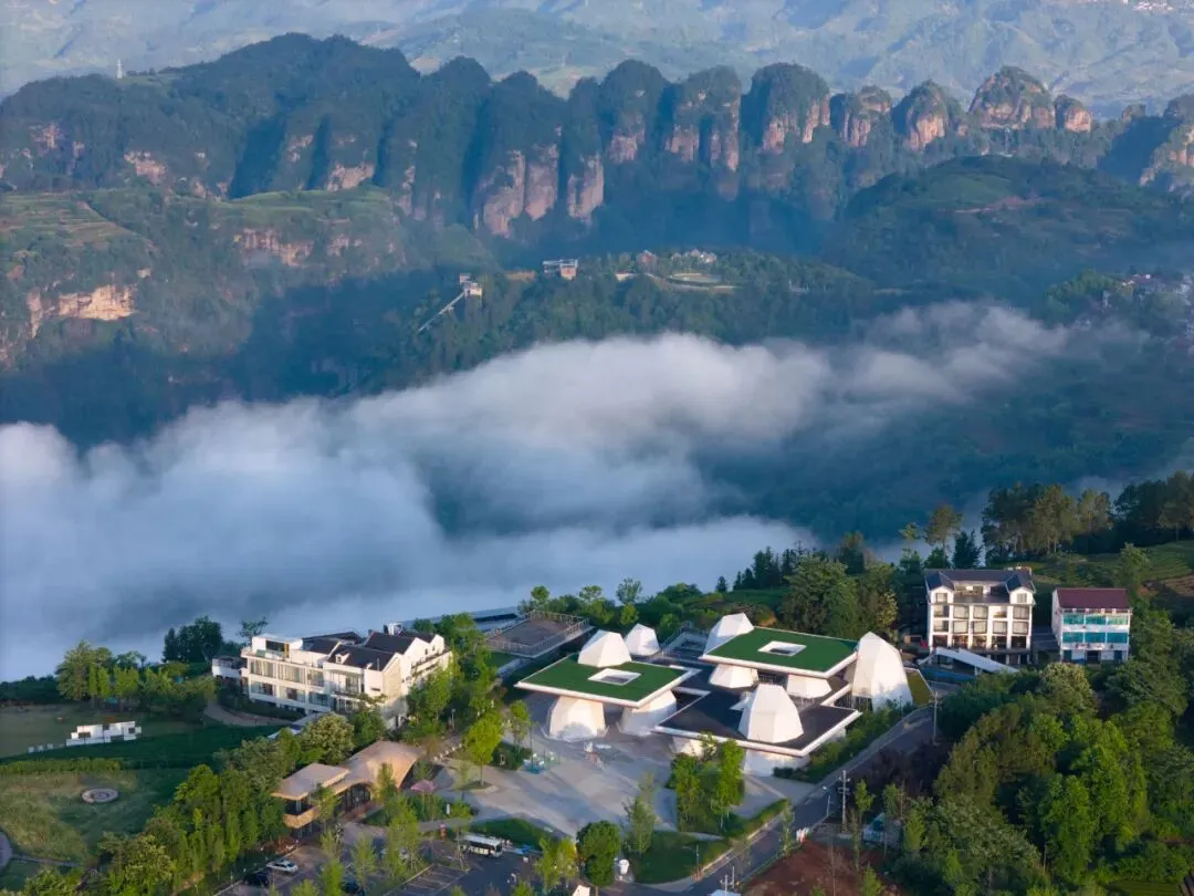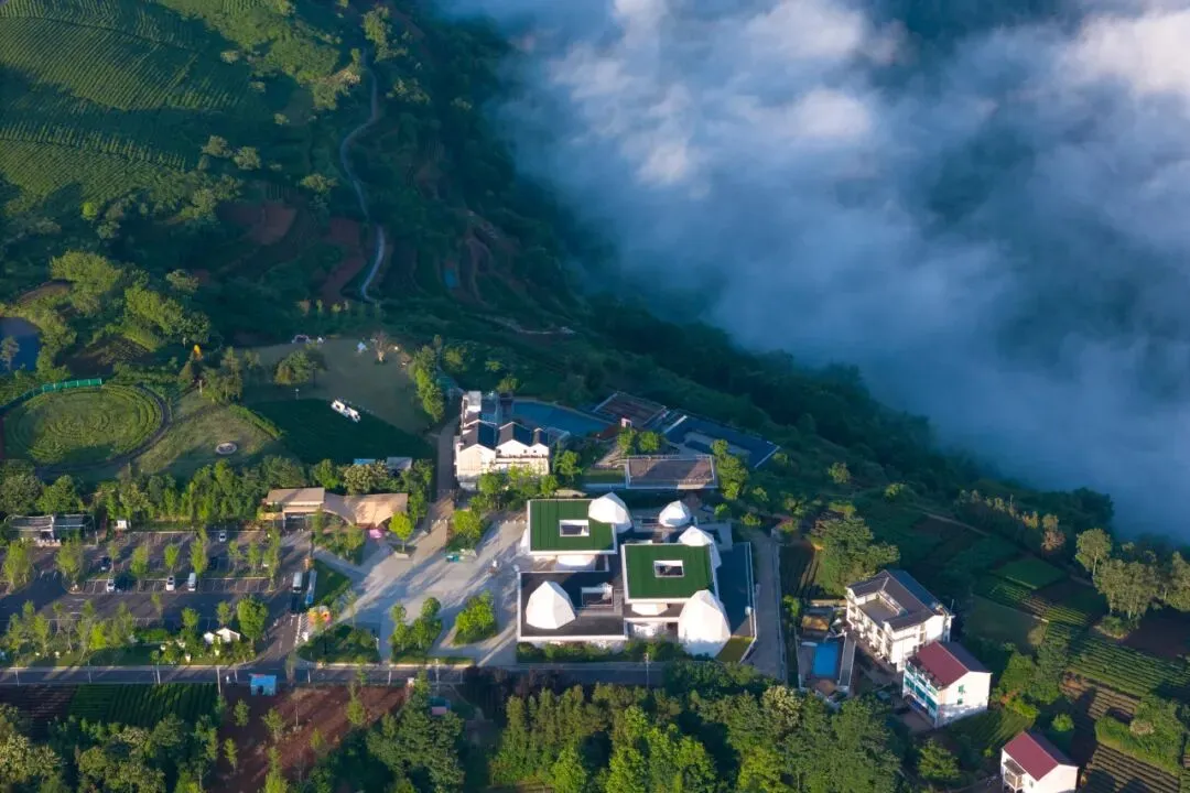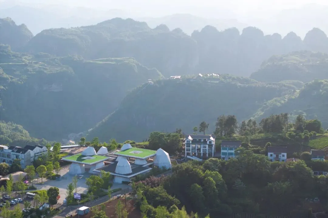 另一方面,“云峰十二重”以极具差异化的形象气质为乡村带来了新的流量。比平面化的图像展示更重要的是,场所与环境所营造出的空间知觉和身体性记忆——当现代异质感与自然乡土并置冲突的同时,轻柔温润的外表皮又映射融入云海晚霞中,独特的环境张力转化为真实的知觉感受与印象,为村民的日常性劳作或游客的非日常旅程,都增添了一段关于此时此地的难忘记忆。