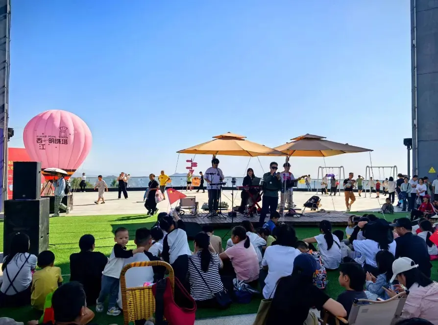 内容:依托“一塔跨粤桂”的地理优势,西江明珠塔景区内可俯瞰粤桂两江四岸城市风光。云顶音乐路演在景区平台广场/云顶区域举行,以“微演艺”为主题,邀请梧州市音乐爱好者展示才艺,主要以小星星乐队等本地小型乐队、歌手驻唱为主,曲风多为流行、民谣等轻松类型,互动性强。