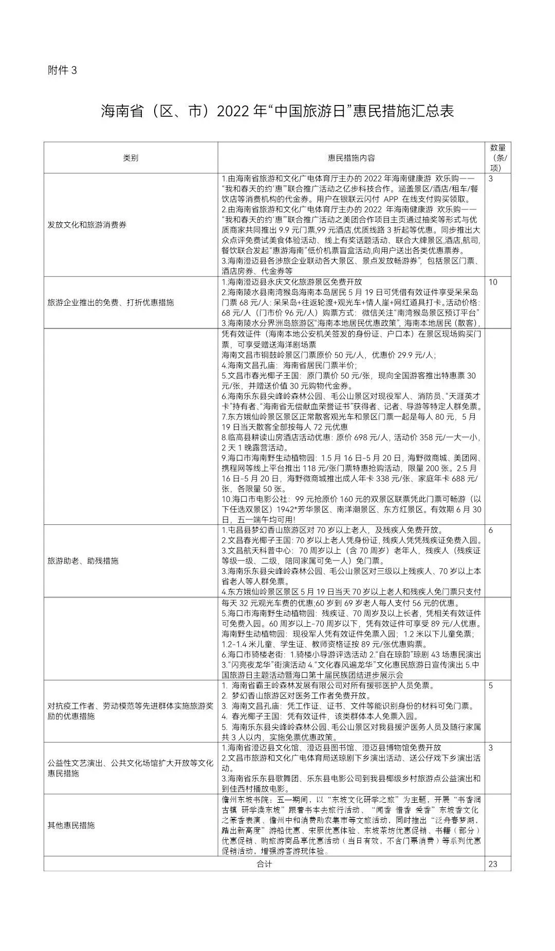 万宁东山岭文化旅游区、兴隆热带植物园、兴隆巴厘村、兴隆南药园等景区景点,更是贴心针对残疾人、老年人、学生等特殊群体,推出不同程度的优惠措施;以及对抗疫工作者、劳动模范等先进群体打造特别优惠方案,让市民群众共享万宁旅游发展成果。