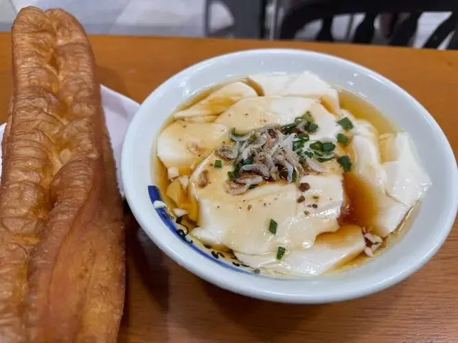 早上豆腐脑配大饼,咸甜都顺口,喝口热豆浆,人就醒。
