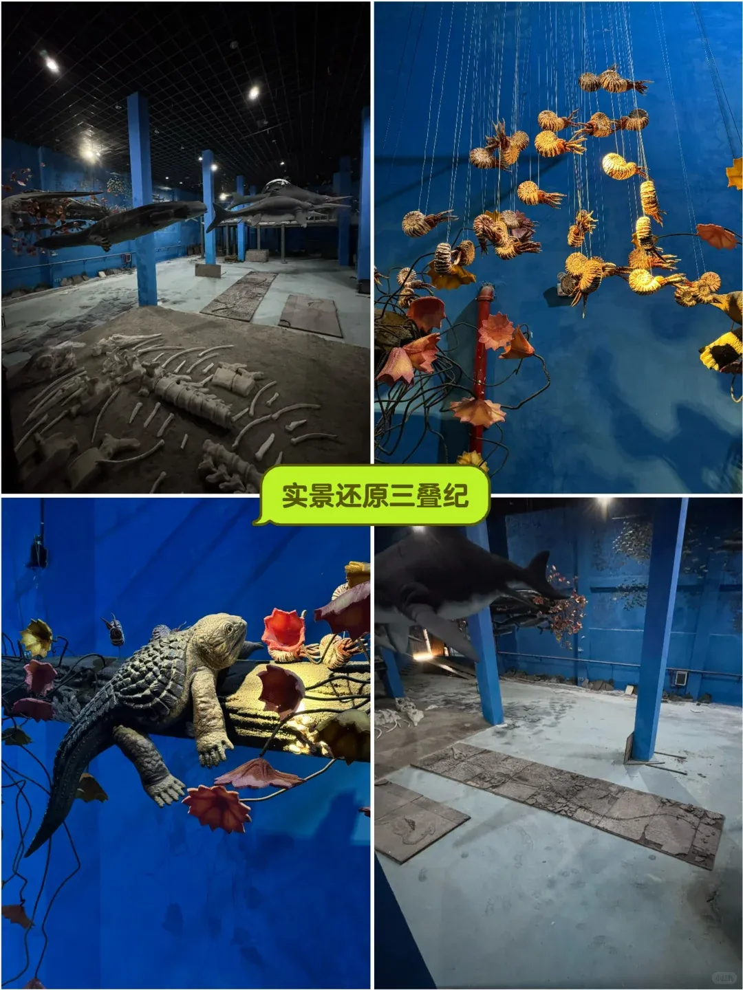 🏢博物馆——打卡世界之最 1⃣42㎡海百合化石墙:灯光下像星空闪烁✨ 2⃣10米邓氏贵州鱼龙:比公交车还长 3⃣奇幻彩蛋:声光电还原三叠纪海洋,鱼龙在头顶游过 ✅5D电影:5D环幕电影讲鱼龙故事,可以先看电影再参观 🎫门票费用已经包含,里面也可以请讲解80元一次。