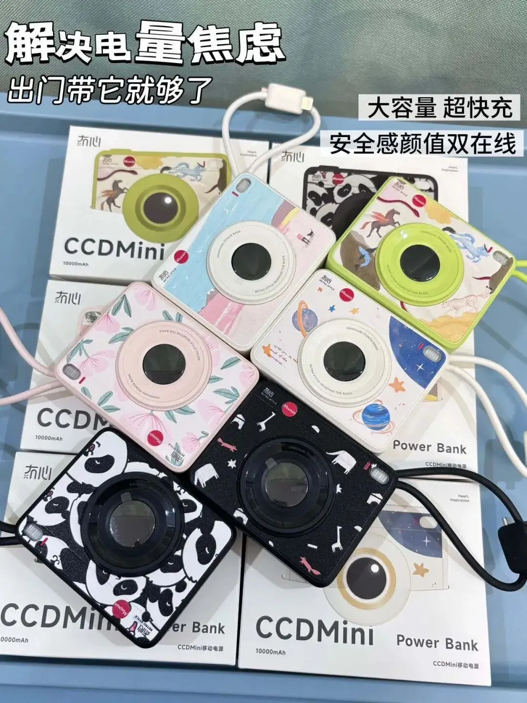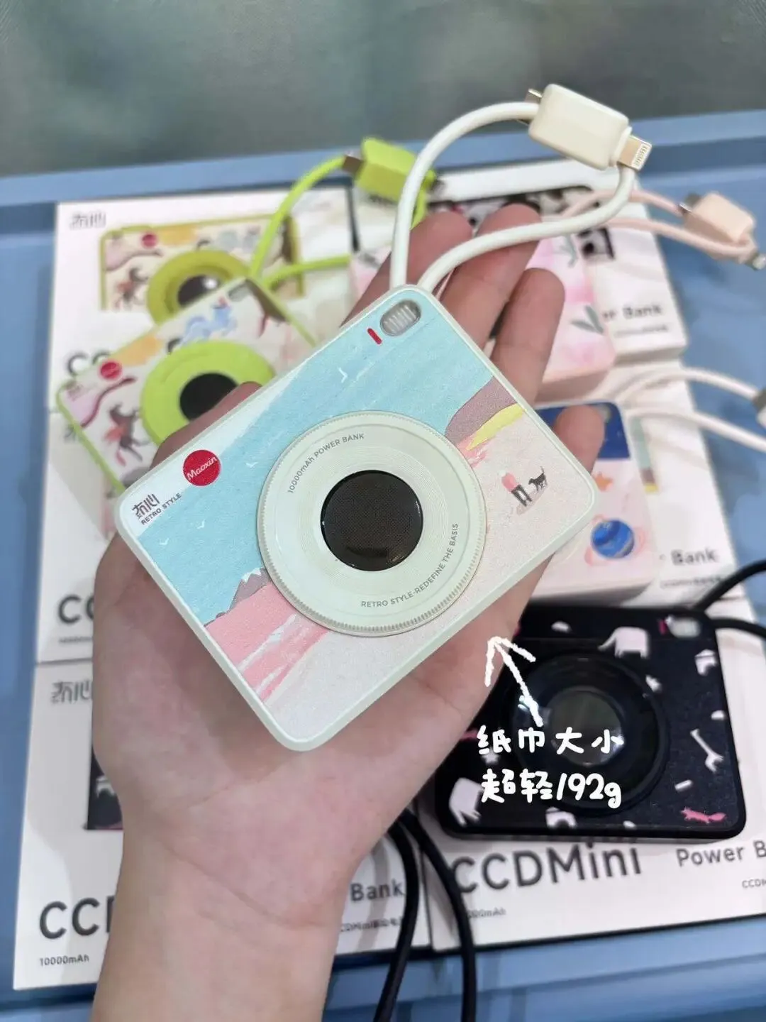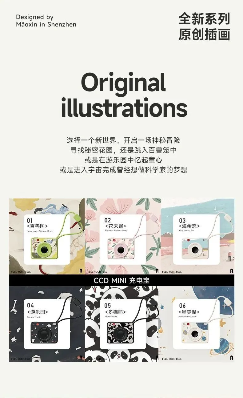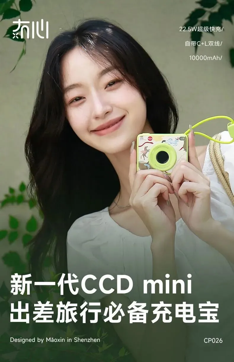 冇心CCDmini插画充电宝 CCD复古感+原创插画的双重暴击 美到舍不得用😍 🔋10000mAh完美符合登机标准 🔋纸巾大小+192g轻量机身 塞行李箱、揣兜里都毫无负担 挂在包上还能当装饰,复古插画颜值超吸睛✨