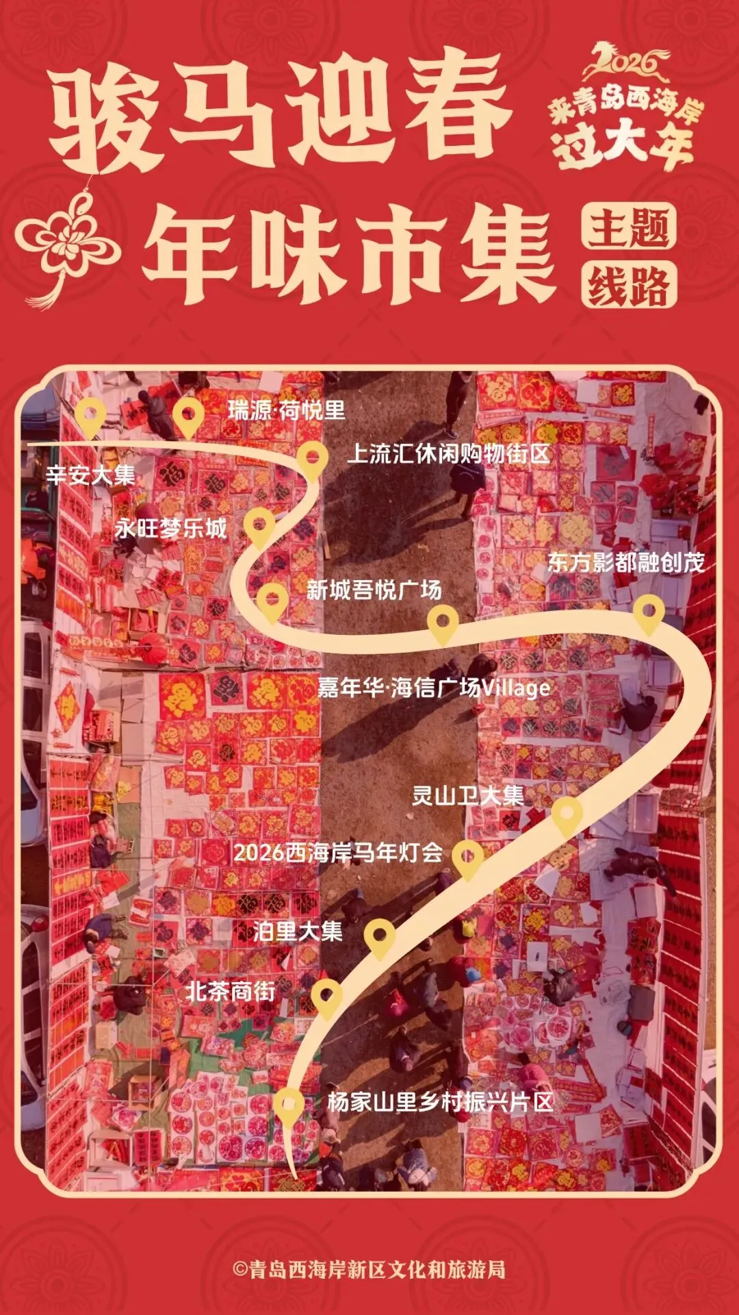 打卡2026西海岸马年灯会,不可错过的新春盛宴等你亲自解锁;前往杨家山里,包个小院过大年;赶一场传承数百年的泊里大集,年货一站购齐;深入本地最具人气的灵山卫大集和辛安大集,感受熙熙攘攘、吆喝声声的鲜活市井年节气氛;漫步北茶商街,品茗购茶,享受茶香氤氲的宁静新年;