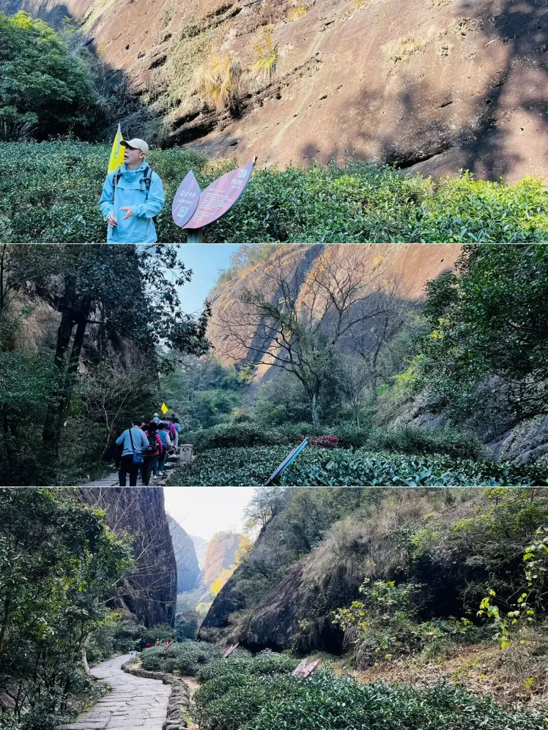 走过片片茶场,在途中有一处绝壁,刻有“岩韵”二字,可驻足片刻听听导游讲讲茶经,所谓岩韵,是为饮用岩茶后唇齿留香的感觉。