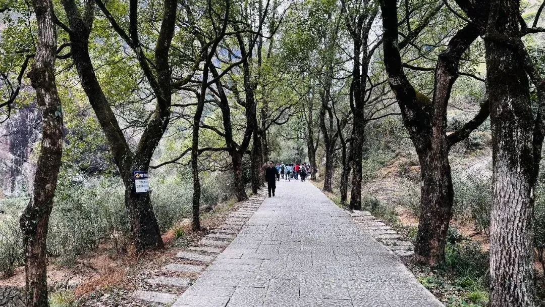 从站点出发,要先沿着峡谷间的一条石板路前行,约需前行1000米。