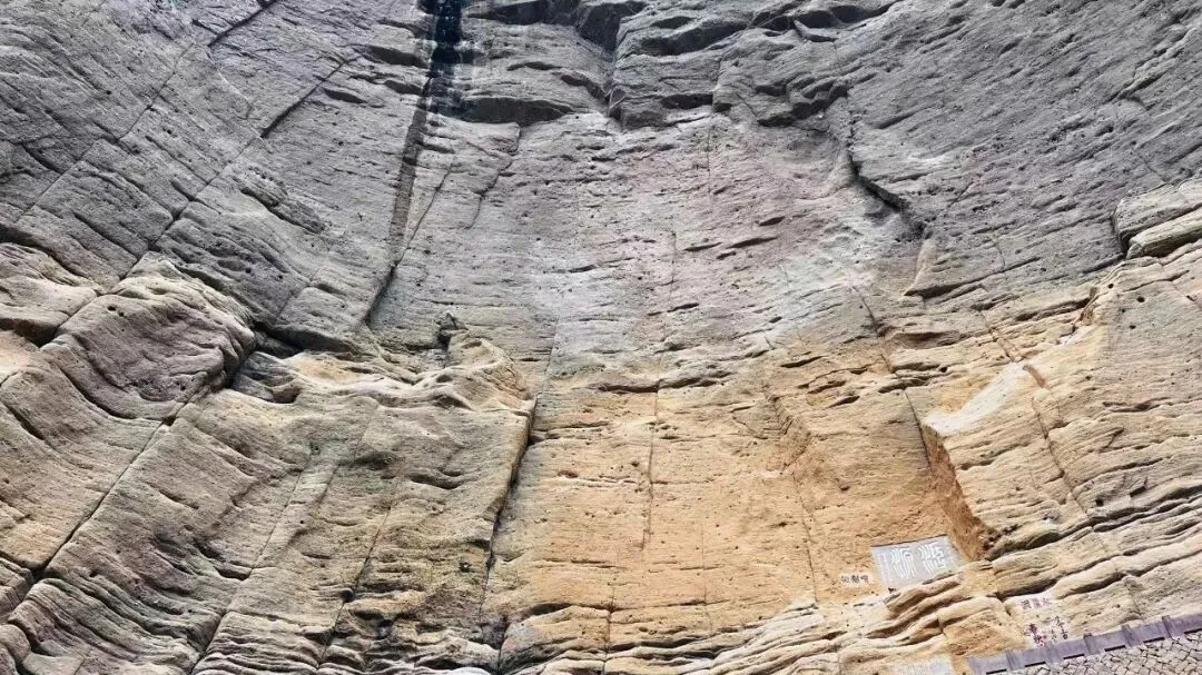 眼前这座山体名为瑞泉岩,其东壁就是水帘洞。顾名思义,此处为因崩塌形成的内凹式的大岩洞,平日里清泉从近百米的洞顶山涧飞流直落崖下的浴龙池,山风拂来,散作无数水珠,如烟如雨,古有诗云,“赤壁千寻晴拂雨、明珠万颗画垂帘”。