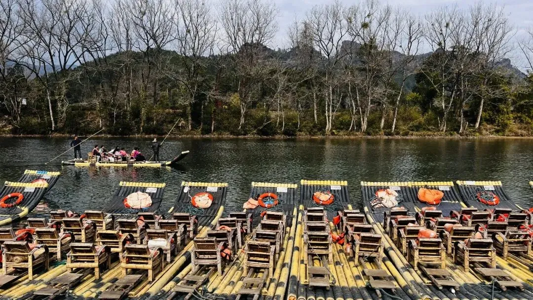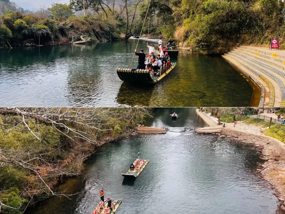 返回天游峰站点,换乘交通车上行即可前往九曲漂流的起点-七星村。