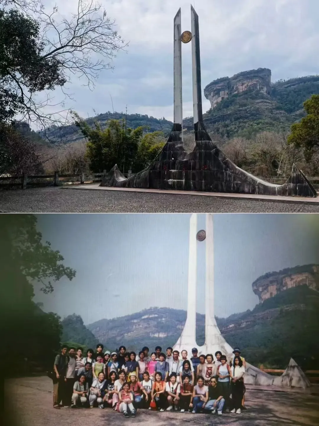 在终点码头附近的桥边耸立着一处武夷山最早的地标建筑,毕业旅行时曾来过此处打卡,快三十年过去了,还好物是人都好。