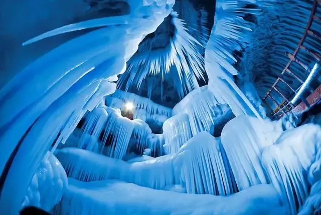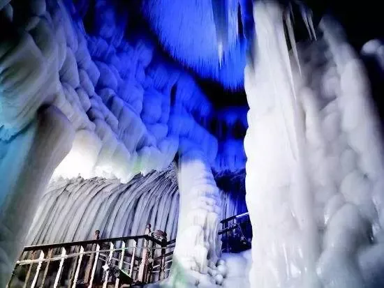 多米,最窄10多米。洞内四周全是冰。由冰形成的冰柱、冰帘、冰瀑、冰花、冰佛、冰床、冰钟、冰人、冰菩萨等,千奇百怪、不一而足。洞内大大小小的景致或玲珑剔透,或晶莹夺目,或婀娜多姿,或雄伟壮丽,无不令人惊叹。堪称一个冰的世界。