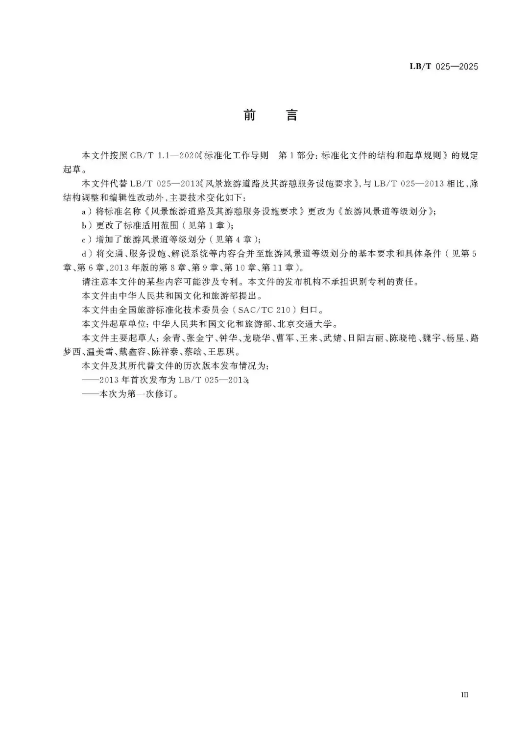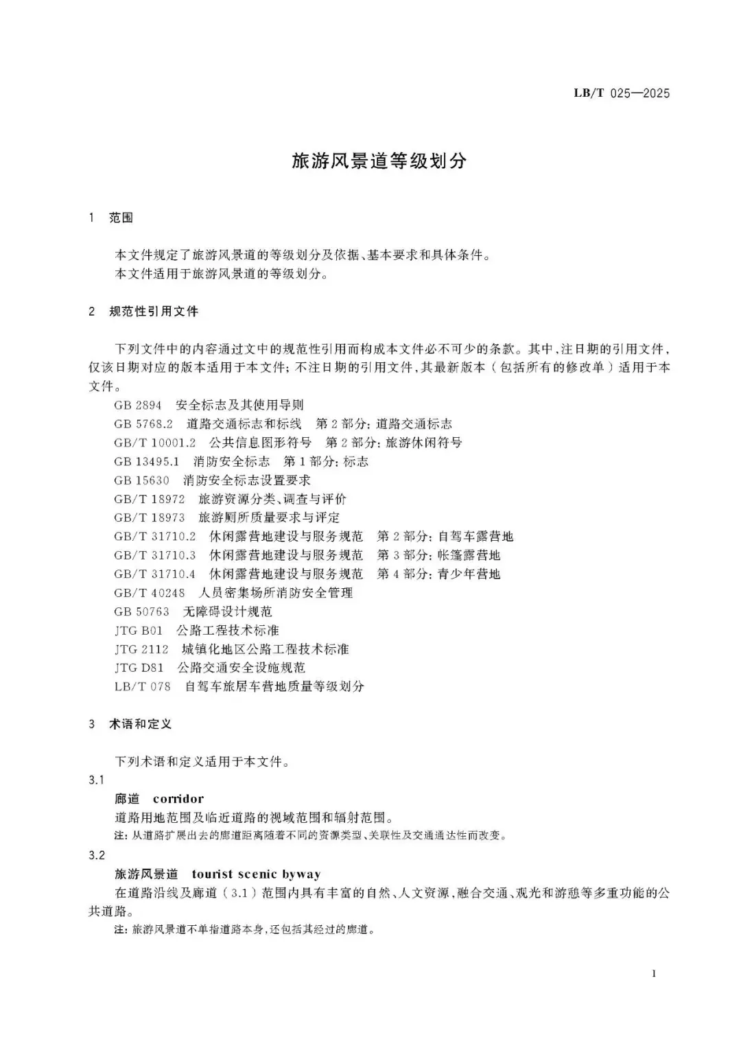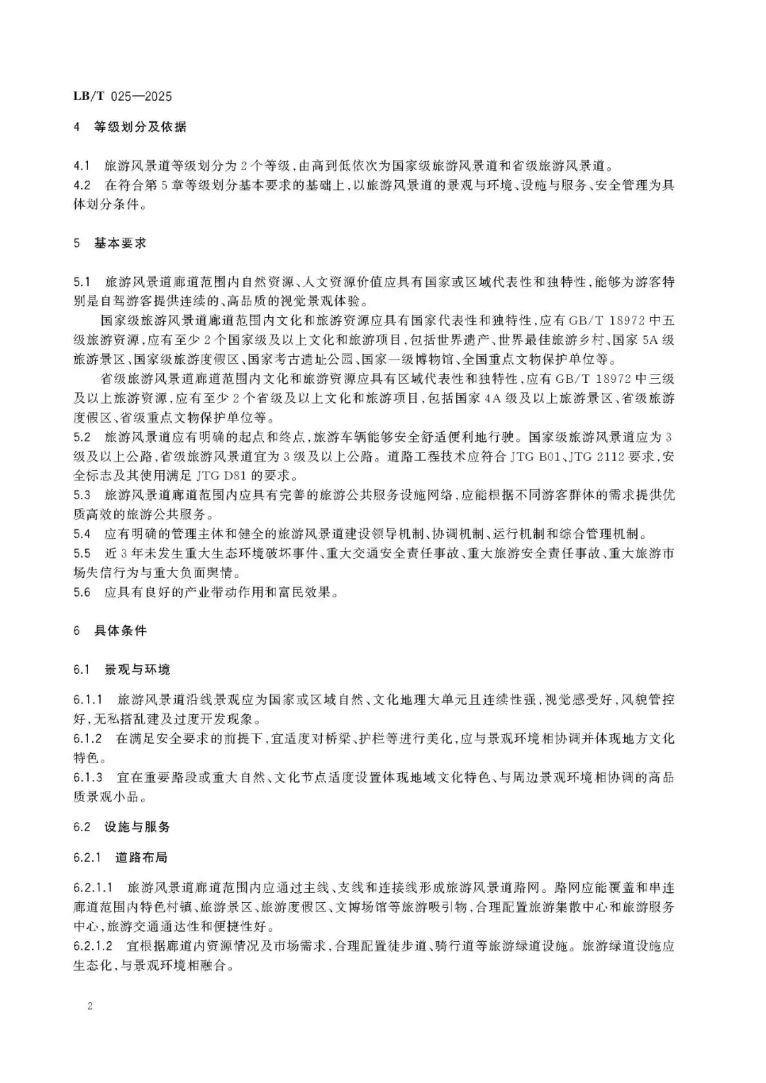 《旅游风景道等级划分》(LB/T 025-2025)