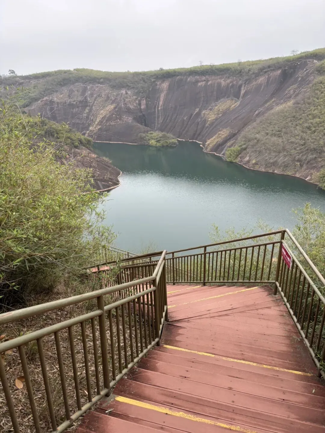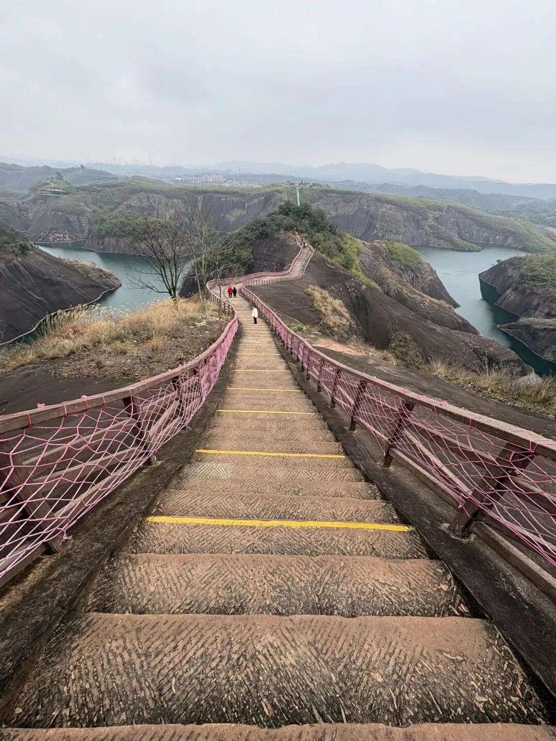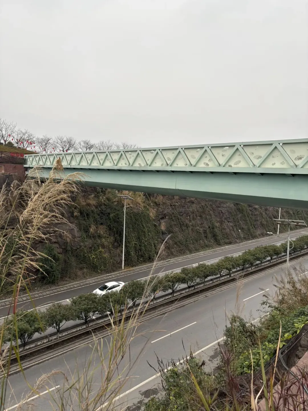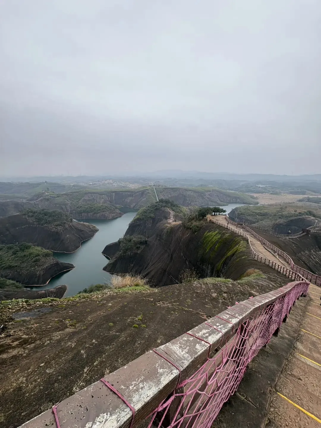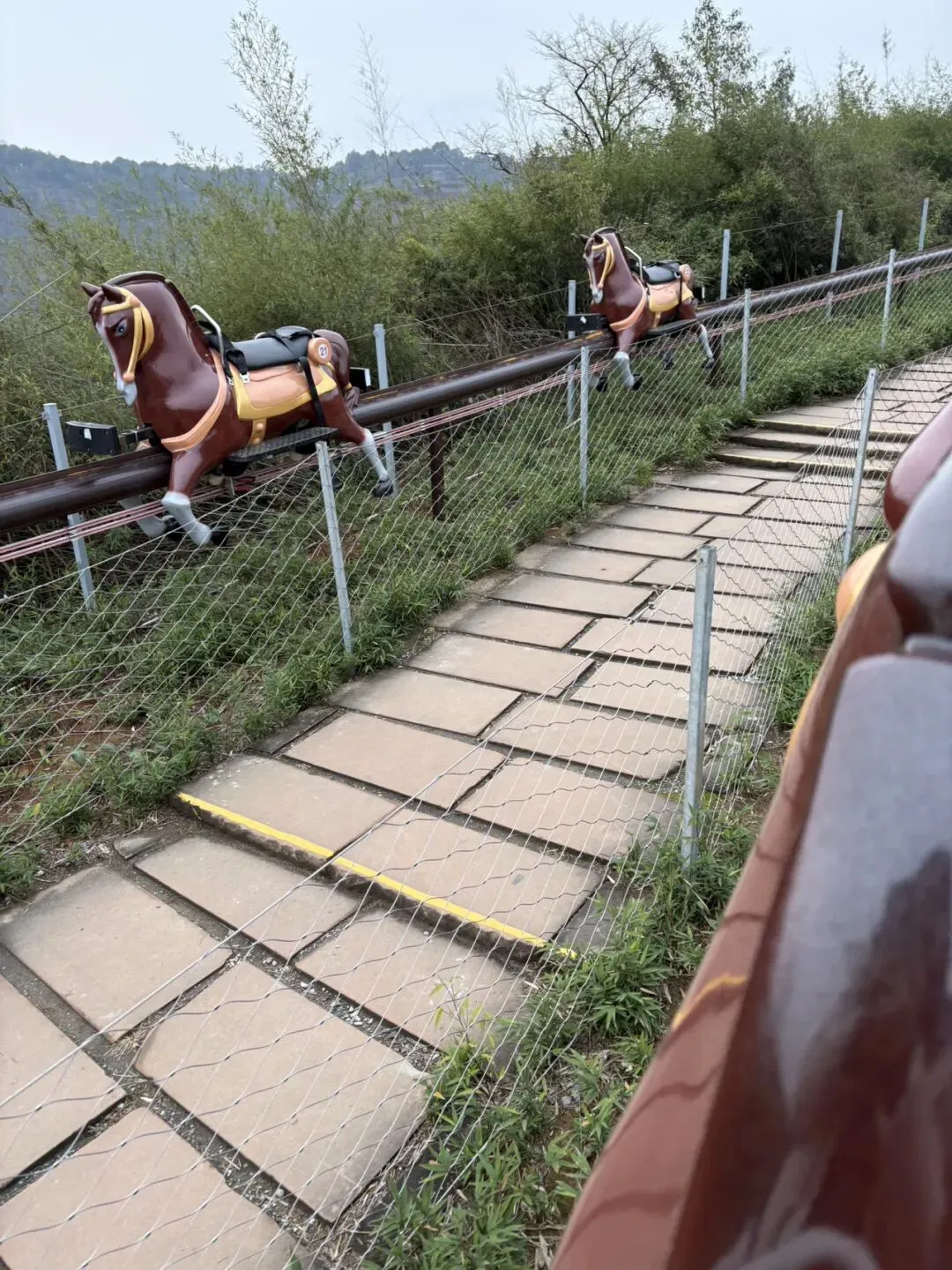 这个“骑马下山”的项目20/人,顶多就5分钟路程,纯属是我老公为了哄儿子交钱玩的,不是好建议成年人去坐了😂。我们是两点坐小车到高椅岭山上的,路上走走停停四处拍照🤳,走回到西门是将近五点,刚好能接受的活动量,但我们还有几座山是没爬到的,在另一条路线,能远眺到,下图是也,遥见他山挂了一排栈道,留着下次去吧哈