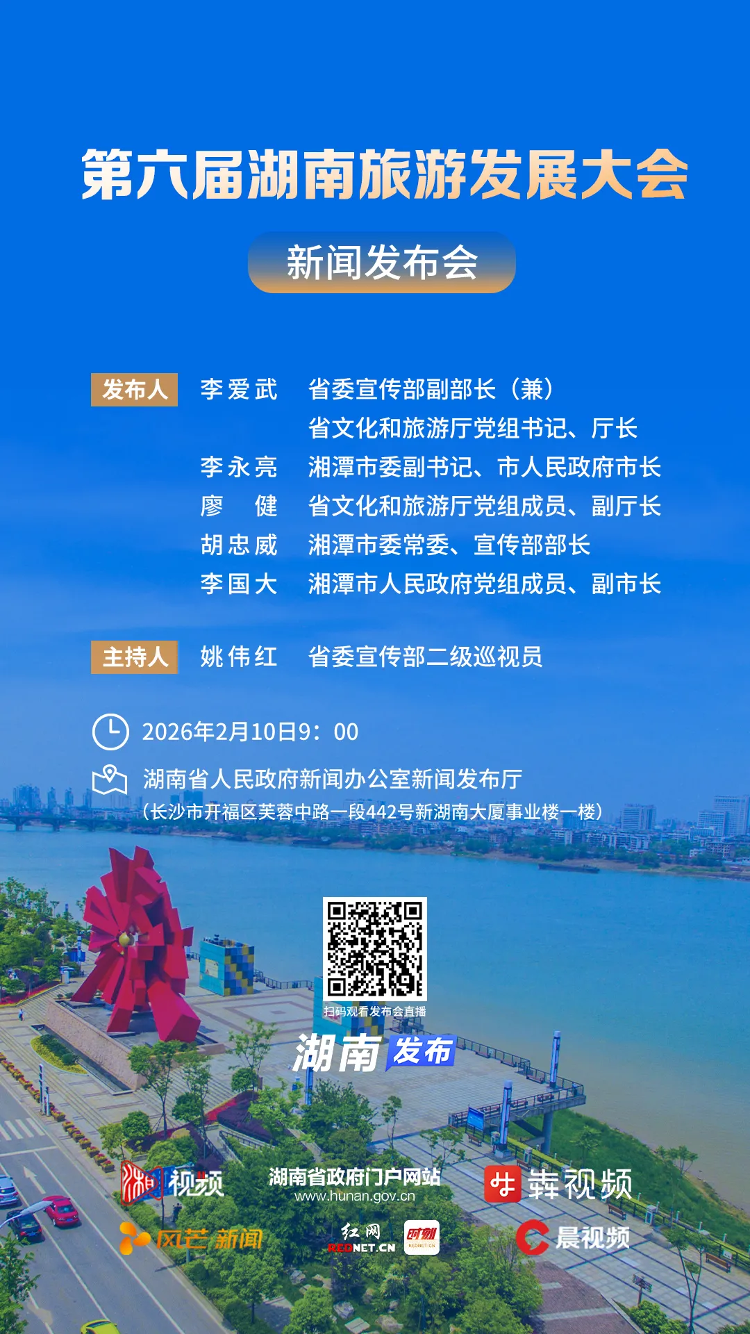 您现在的位置是:首页 > 国内旅游目的推荐 > 正文 国内旅游目的推荐 第六届湖南旅游发展大会新闻发布会,明天上午9时举行! admin2026年02月09日 23:57:22国内旅游目的推荐1 第六届湖南旅游发展大会新闻发布会,明天上午9时举行!↑点击上方蓝色字“这里是湘潭”一键关注湘潭广电新闻官方微信。每日精彩,尽在掌握!来源: 湖南日报·新湖南客户端编辑:李艳审核:江明亮 王小燕 陈友胜▼湖南省“十五五”规划纲要极简版来了“湘潭广电”视频号感谢关注、点赞 转载请说明来源于"旅荐网",部分内容转载自网络,如有侵权请联系qlwl@foxmail.com删除 本文地址:https://www.15386.cn/post/99377.html 上一篇 河南老君山把全国景区的饭碗给砸了 下一篇 湖北神农架把全国景区的饭碗给砸了 相关文章 招23人!大冶市九古奇村文化旅游发展有限公司招聘,2月6日-2月16日报名 长鹿旅游休博园陪你一起过大年!!! 在泰国旅游买的金饰 回国后发生了一件离谱的事 保姆级教程!5分钟部署能查天气、荐景点的智能旅行助(附完整可运行代码) 职工风采|细数三峡旅游公司“心头一颤”的那些瞬间 “陕西省特色助农旅游文化节”新闻发布会举行 春节假期,海南启动一系列旅游暖心服务→ 江苏13市旅游景点 现在的万宁就像十多年前的三亚,景区豪华酒 关于中国公民春节假期来荷旅游的领事提醒 发表评论 取消回复 评论列表 这篇文章还没有收到评论,赶紧来抢沙发吧~