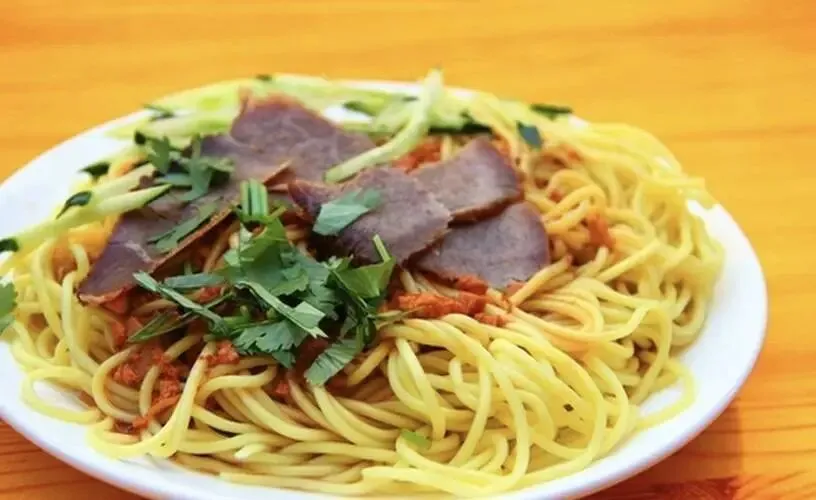 早上来碗驴肉黄面,黄面筋,驴肉香,蒜泥一拌走一天都不饿。
