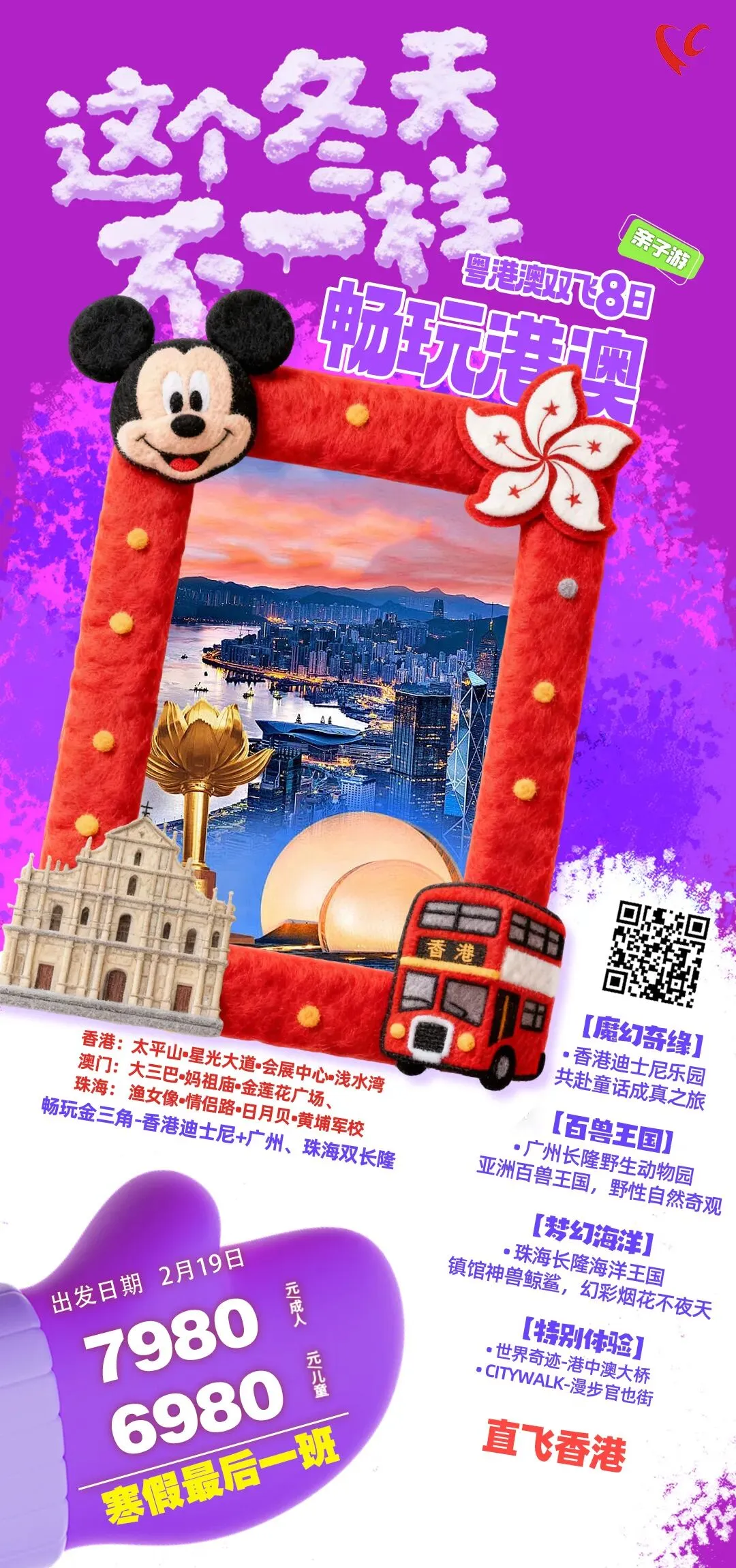 宽体客机从乌鲁木齐直飞香港,香港迪士尼乐园,广州长隆野生动物园,珠海海洋王国全部安排。