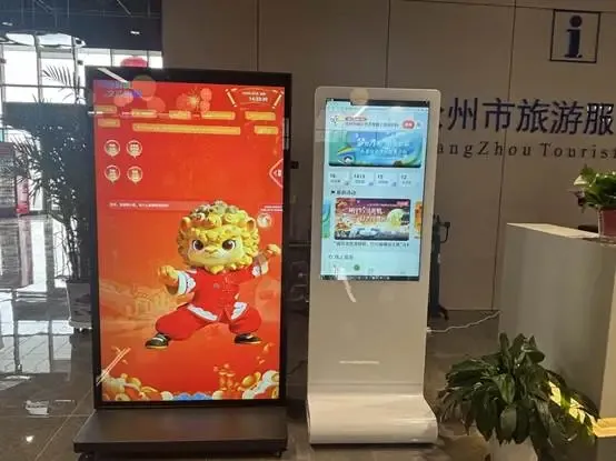 该中心积极融入智慧旅游发展理念,优化服务流程与体验质感。一是配置两台智能服务一体机,其中一台搭载AI互动助手“狮小吼”,以铁狮子为设计原型,具备智能咨询、信息查询、语音互动等功能,可为游客精准讲解沧州景区特色、本土特色美食、公共文化资源和非遗知识,一站式满足游客的文化与游玩资讯需求,让文旅服务更具亲和力与专业性。二是开通了“轻松游河北”行李寄递服务,游客通过扫码即可实现轻松邮寄等功能,全程操作便捷、透明规范,有效提升旅游出行效率。