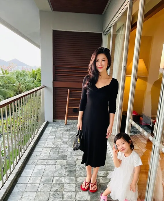她晒出的旅行照里,4岁的女儿头戴鸡蛋花,眉眼弯弯,那神韵简直是她的迷你翻版。