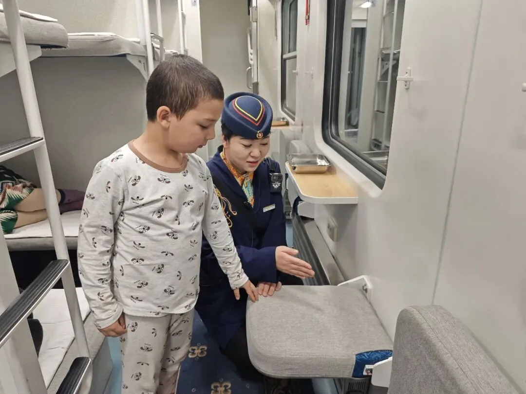 以六项便民服务举措为抓手,升级“天山雪莲”服务品质:各次列车增配血氧仪、为“老、幼、病、残、孕”旅客及通勤职工提供爱心帮扶,全面升级了旅客遗失物品查找服务,并且落实了新生、毕业生优惠资质核验优化规则。全员以暖心言行践行服务理念,让旅客在旅途中感受温情与关怀。