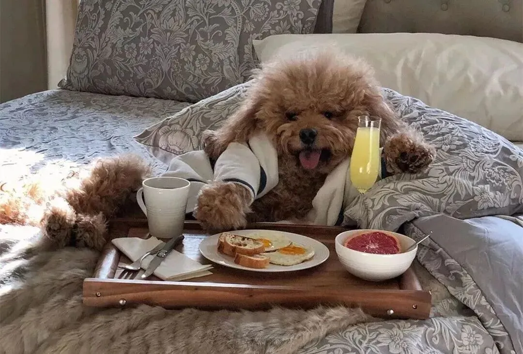 一只贵宾犬 , 喝咖啡看报纸 , 敷面膜看电影 , 还有女朋友 , 我看完沉默了 , 它的生活质量 , 真的碾压大部分打工人吧?