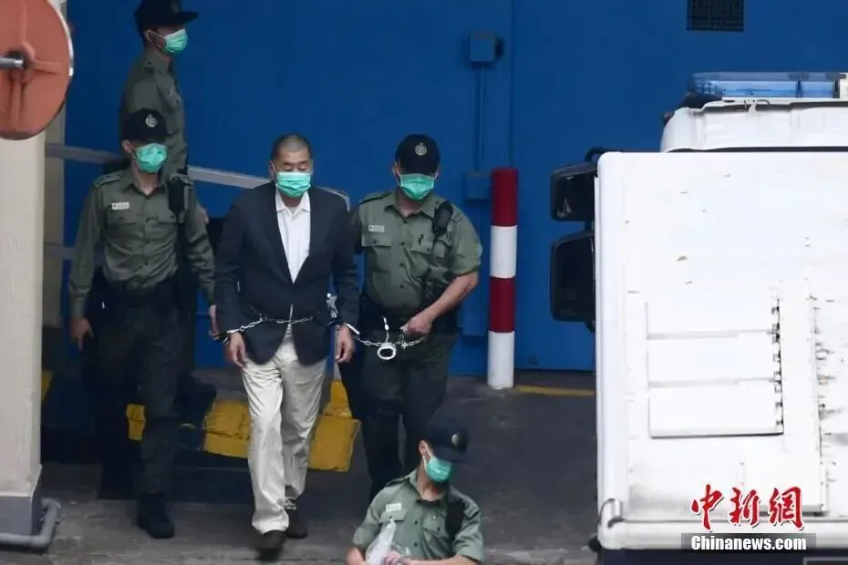 反中乱港分子黎智英与苹果日报3家公司违反香港国安法等案件9日在香港量刑裁决。香港特区高等法院当日宣判,黎智英因两项串谋勾结外国势力罪及一项串谋发布煽动刊物罪被判监禁20年。这是香港国安法实施后,首宗勾结外国势力罪的案件判刑。(新华社)