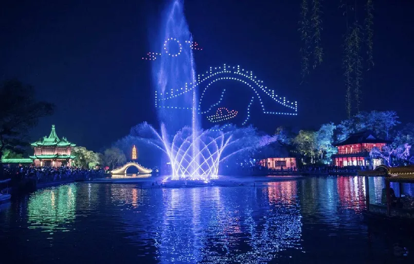 无人机表演主题为“烟花扬州 梦幻光影”,年初一至初五每晚在瘦西湖、宋夹城区域上空震撼上演。每晚表演时长15分钟,为广大市民与游客带来一场科技与美学交融的视觉盛宴。