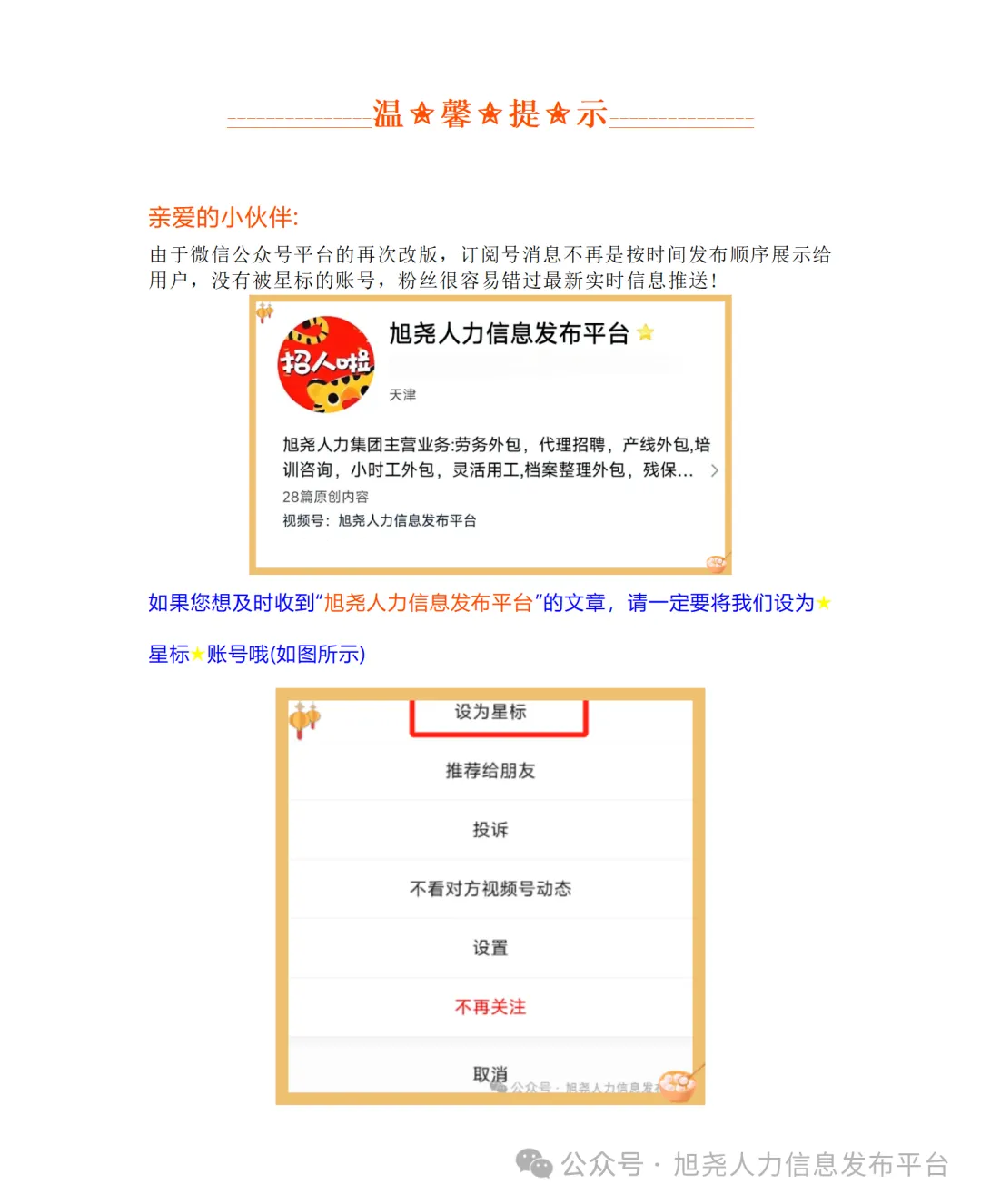 欢迎大家报名,更多蓝领白领普工好岗位,国央企事业单位招聘信息每天更新,欢迎大家关注#旭尧人力信息发布平台,微信搜一搜,搜索“#旭尧人力信息发布平台”点关注,即可提前锁定更多好岗位。