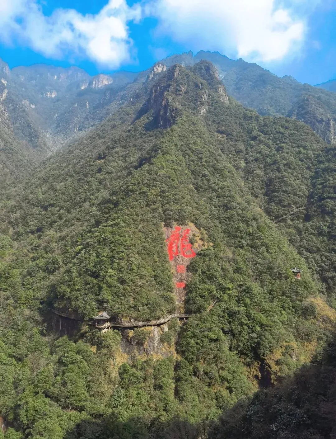 天脊龙门的石栈道盘在海拔1000多米的悬崖上,从远处看活像一条龙趴在山间。我是有点恐高的人,走到一半腿有点软……但风景确实牛,值得硬撑着走完。