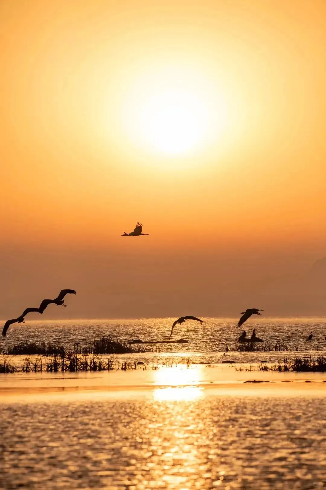 清晨的草海有多美呢——薄雾贴着水面漂,鸟群扑棱棱从芦苇丛中飞起来,逆光下翅膀半透明。说治愈都轻了,**那个画面是直接让人