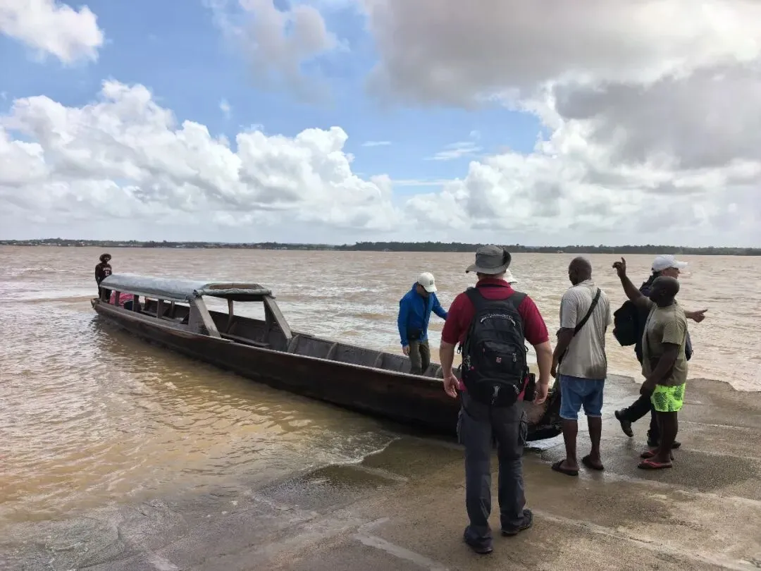 离开监狱遗址几分钟后 ,车子抵达了法属圭亚那与苏里南交界的河畔。两地的出入境手续十分简便,没有繁琐的流程,过境只需乘坐一艘小船——那种小船类似威尼斯的贡多拉,小巧玲珑,却行驶得又快又稳,在浑浊的河水中穿梭,带着几分奇特的韵味。他坐在船上,看着窗外的河水,从入境时的血红,渐渐渐变为泥黄——与梦境中驳船航行的方向相反,与那种绝望的氛围相反。河面上没有鲨鱼鳍划破水面,没有死寂的吞噬,只有对岸苏里南的椰林,在远处缓缓逼近,绿意盎然,充满了生机,仿佛一下从绝望的梦境,彻底回到了鲜活的现实。