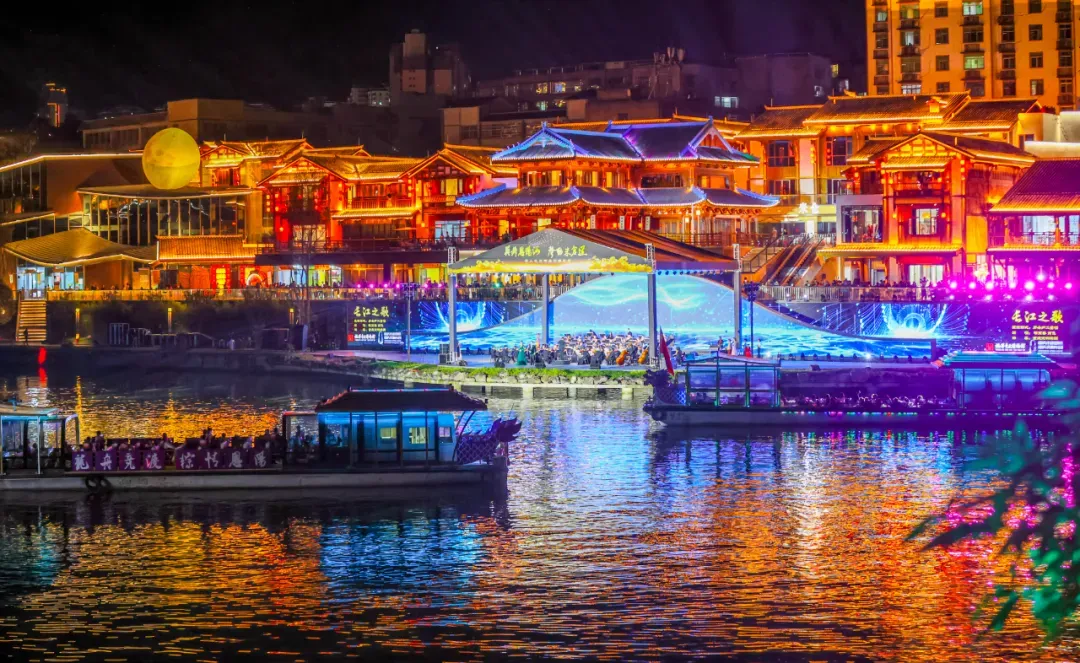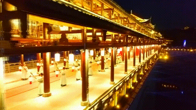 乘坐“古镇”+“游船”一体式观演,依次体验“天作之合”“红梅定情”“文昌盛会”“古道赴京”“金榜题名”“忠肝义胆”“龙凤呈祥”“大美恩阳”八大篇章。从“恩阳十八景”到民间谚语,从水陆码头商贾胜景到历史传说,你将穿越时空,领略恩阳古镇昔日的辉煌与独特魅力。