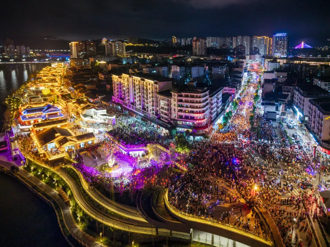 在主体建筑风格、街区布局等方面传承延续了古镇肌理,又保持创新格调,融入了文化演艺、餐饮美食、文创衍生、夜间经济等业态,为游客带来沉浸式互动的游玩体验。