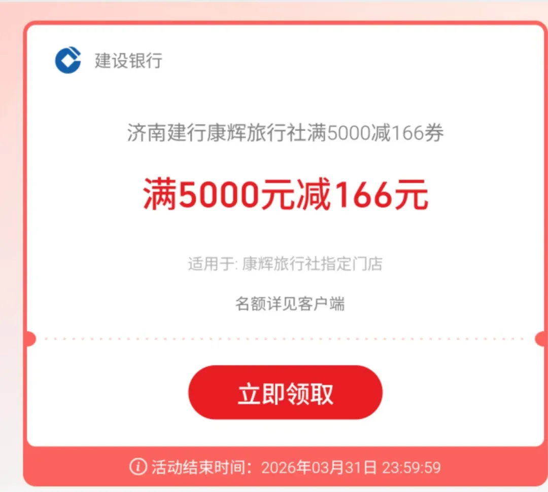 宝子们注意啦!济南建行联合康辉旅行社送旅游福利啦🥳