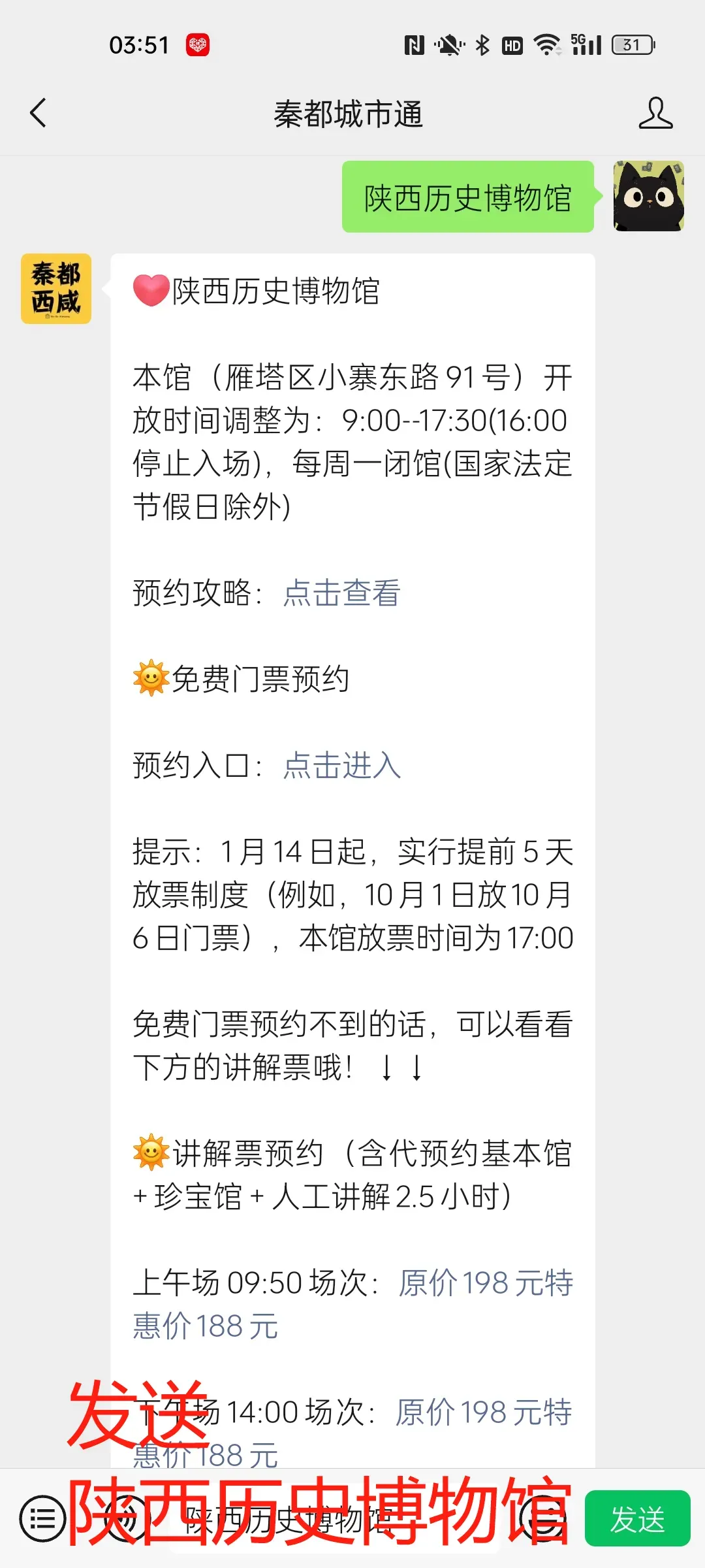 ⏩预约入口+流程:大家也可以在【秦都城市通】对话框回复【陕西历史博物馆】,预约陕西历史博物馆免费门票及收费门票,查看预约攻略及游玩指南。