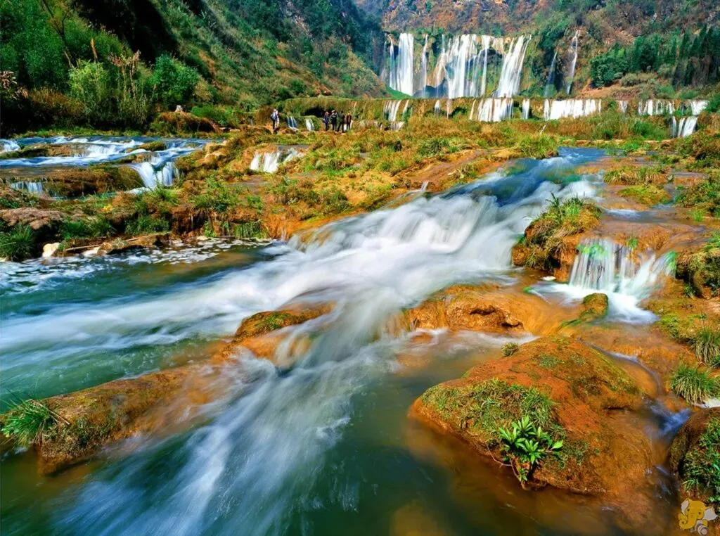 藏在罗平东北的九龙河上,4公里河道里藏着十来级大小瀑布,落差超百米!远远就能听见水声轰鸣,走近更是气势逼人。不同角度都能拍出大片感,尤其站在高处俯瞰,层层叠叠的白练飞泻而下,清凉又震撼。