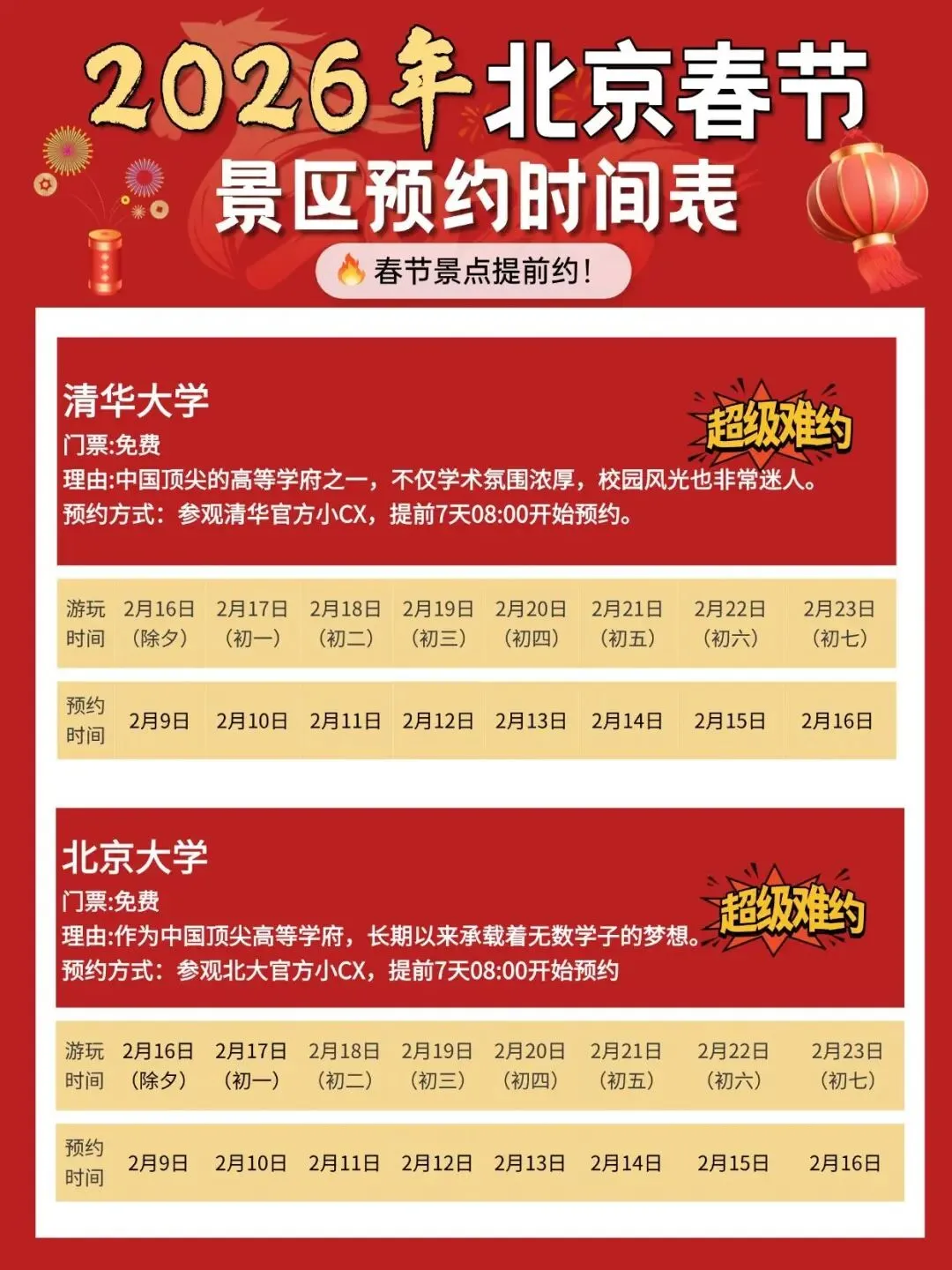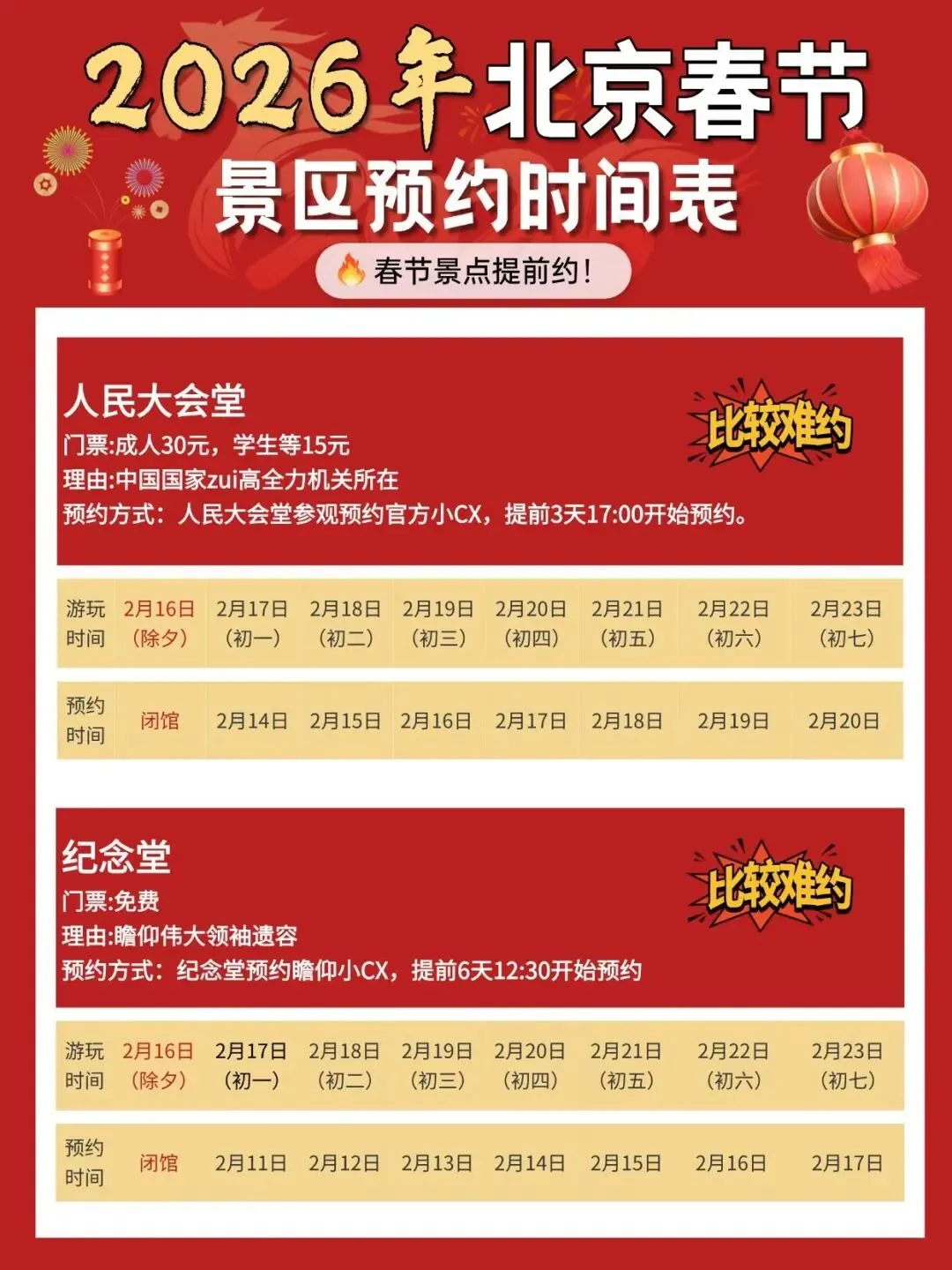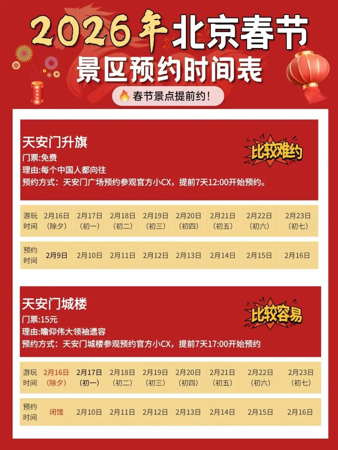📣 2026春节期间,北京游客较多,热门景点门票需卡点抢!