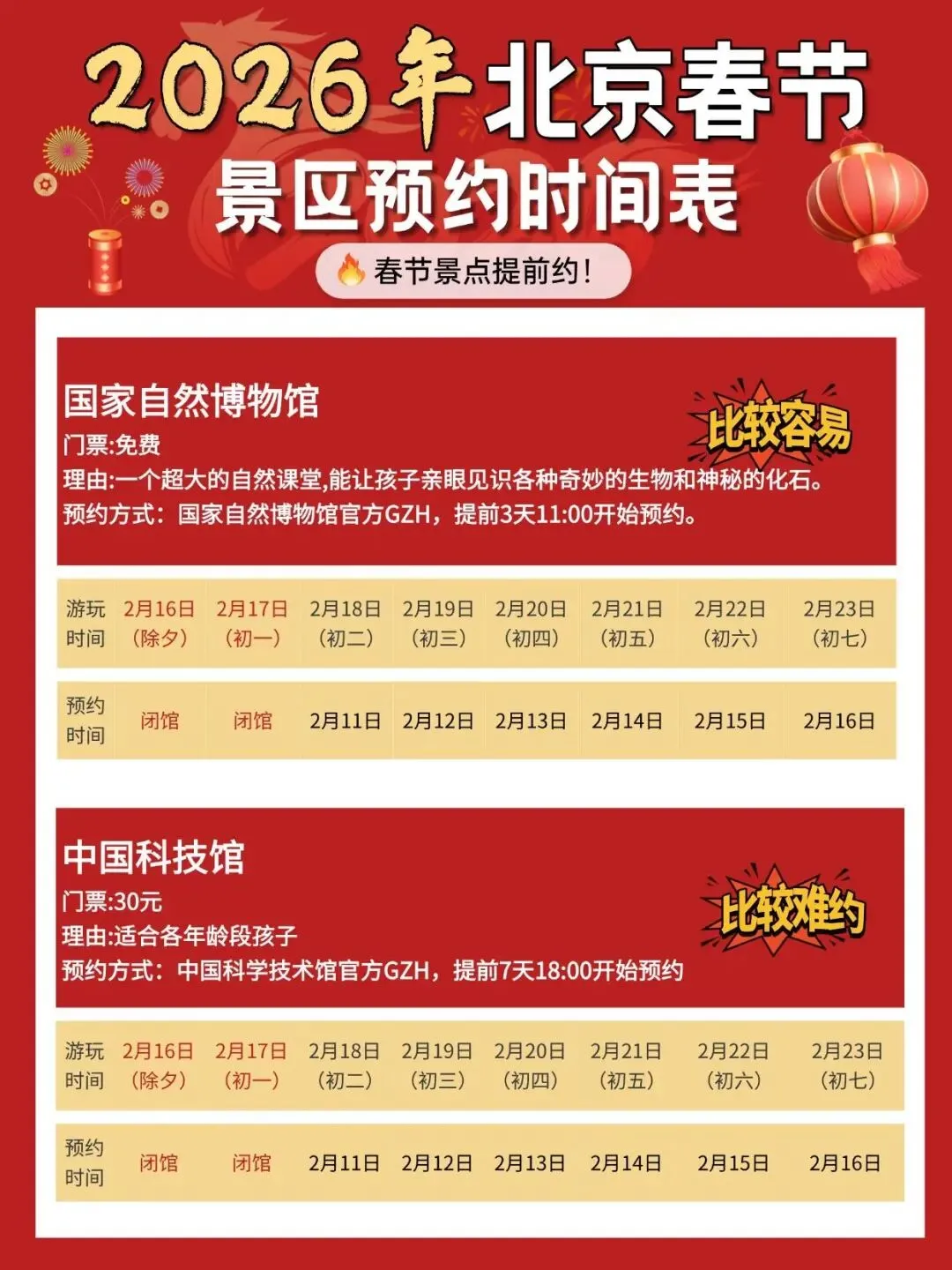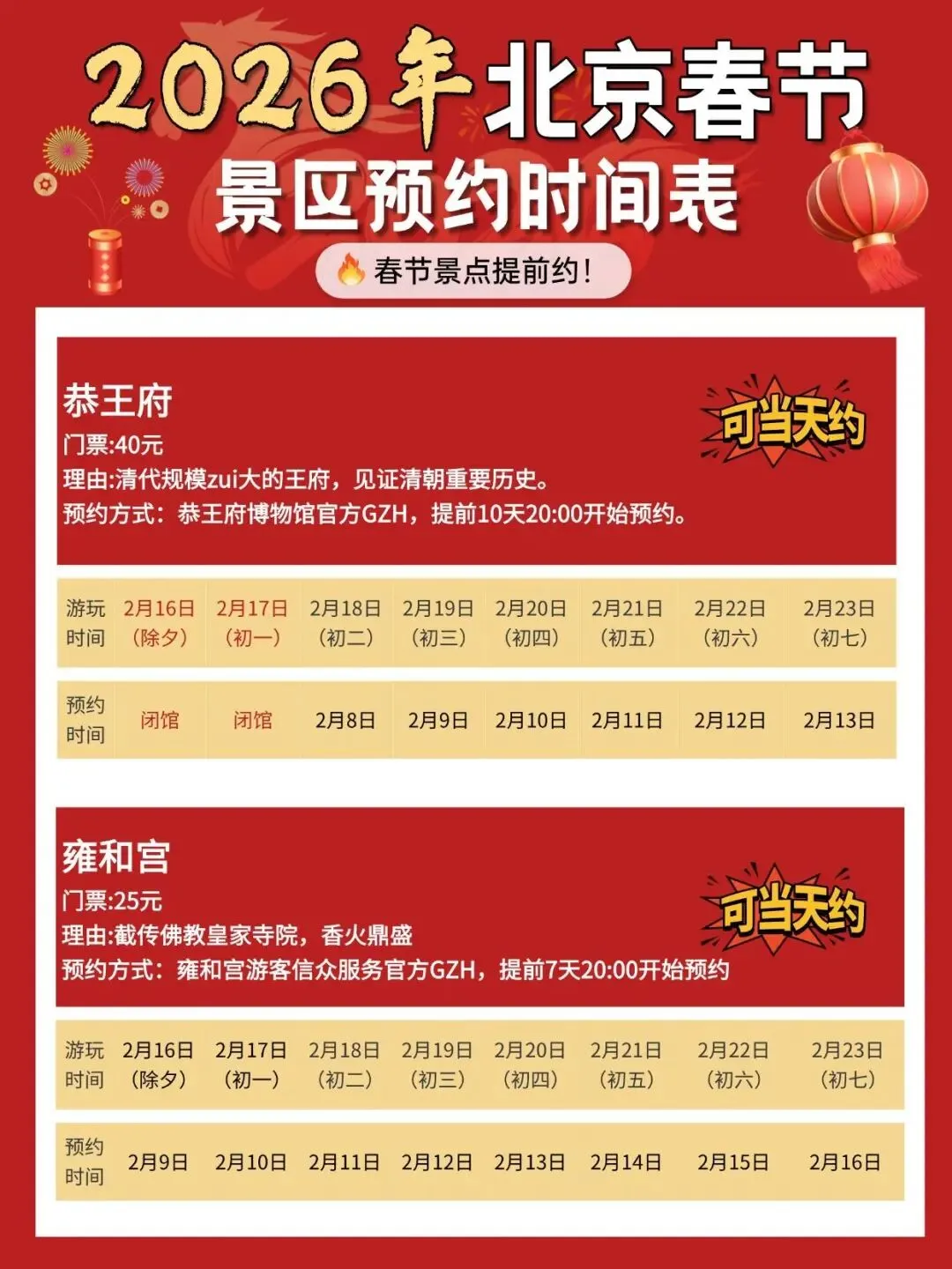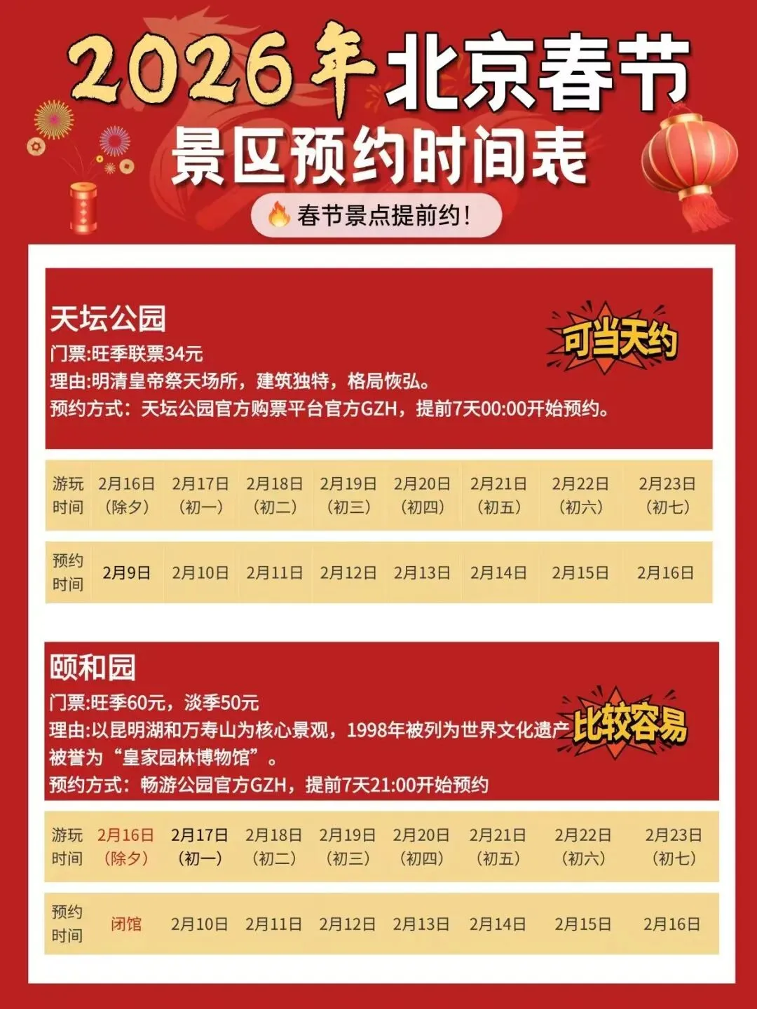 2026北京春节热门景区预约时间表一览!故宫、颐和园、国博...北京春节预约提前订