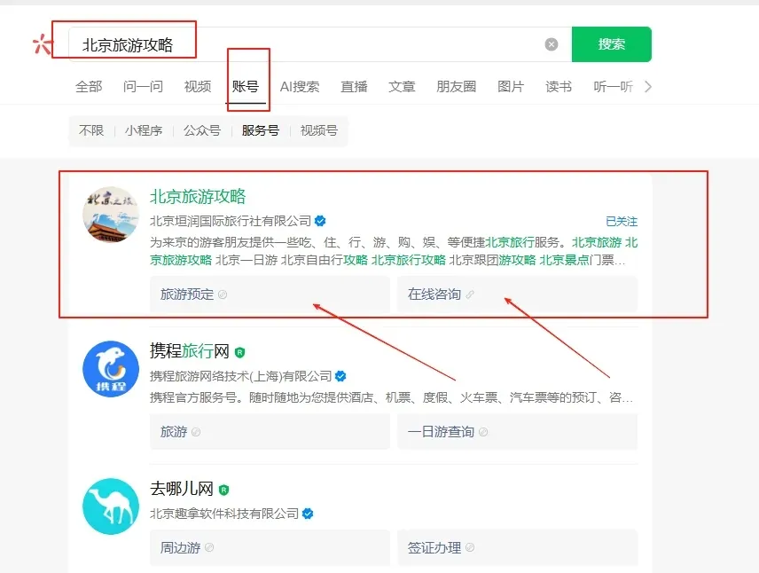详细步骤:微信搜素:北京旅游攻略,点击账号点击服务号即可找到,你需要的这里都有