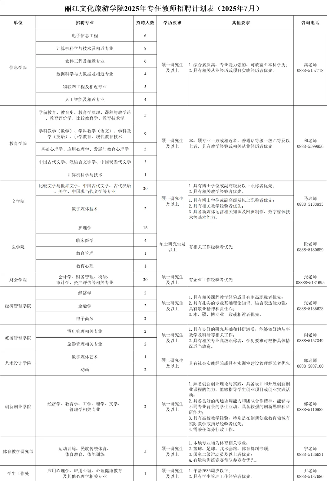 云南丽江文化旅游学院2025年招聘140名硕士专任教师行政管理科员辅导员简章