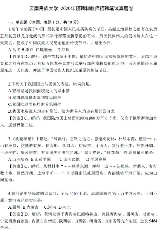 押中2023年6月11日云南民族大学预聘制招聘教师笔试试题29分,且题型全部押中! (点击查看,有图有真相)