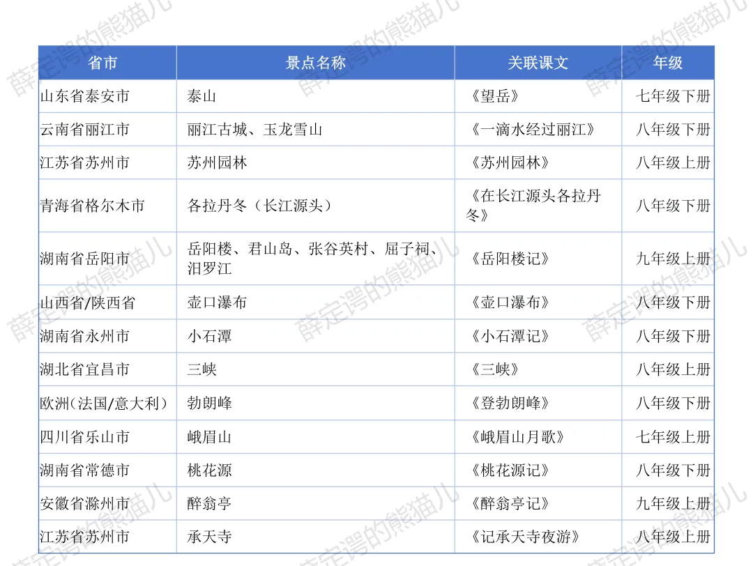 跟着课本去旅行!(2)附人教版初高中景点清单