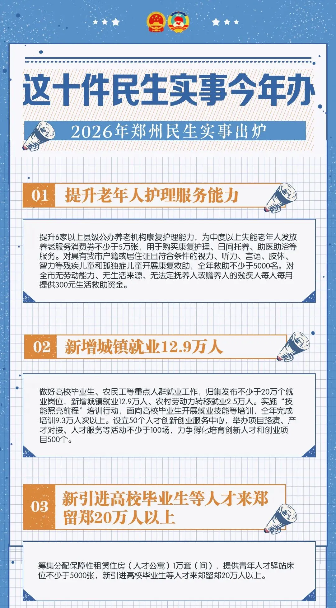 ●今年,郑州将重点办好十项民生实事↓↓↓。