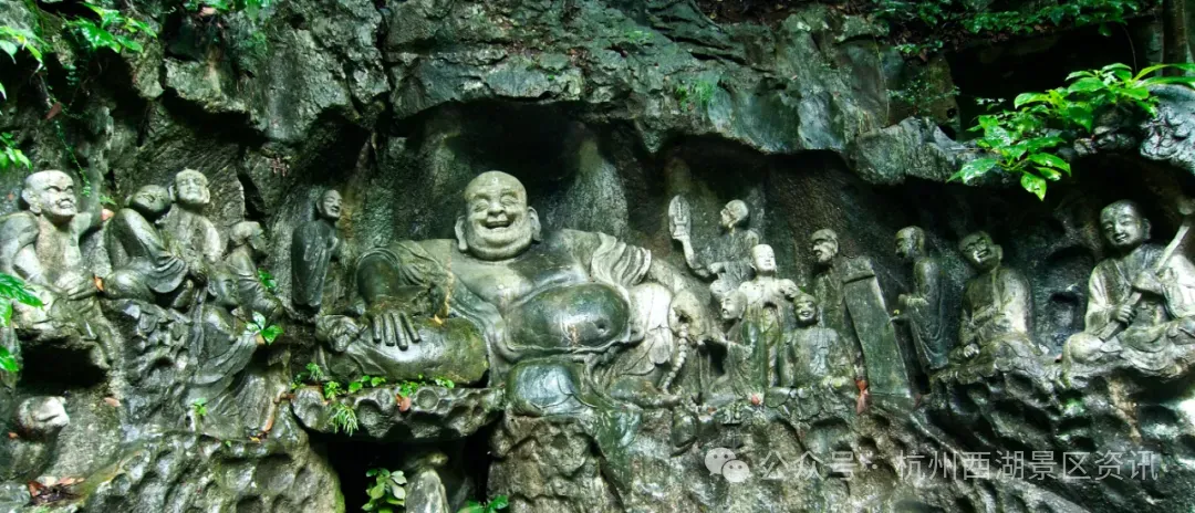 - 冷泉南岸:全国唯一“布袋弥勒与十八罗汉”组合造像,弥勒袒腹笑迎,罗汉神态鲜活